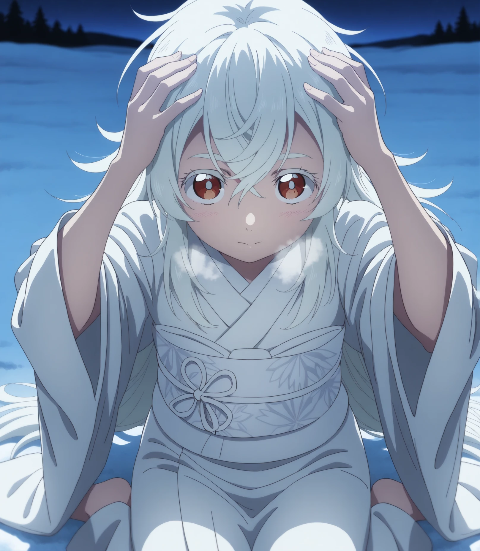 long sleeves, japanese clothes, wide sleeves, kimono, sash, obi, white kimono, white sash,