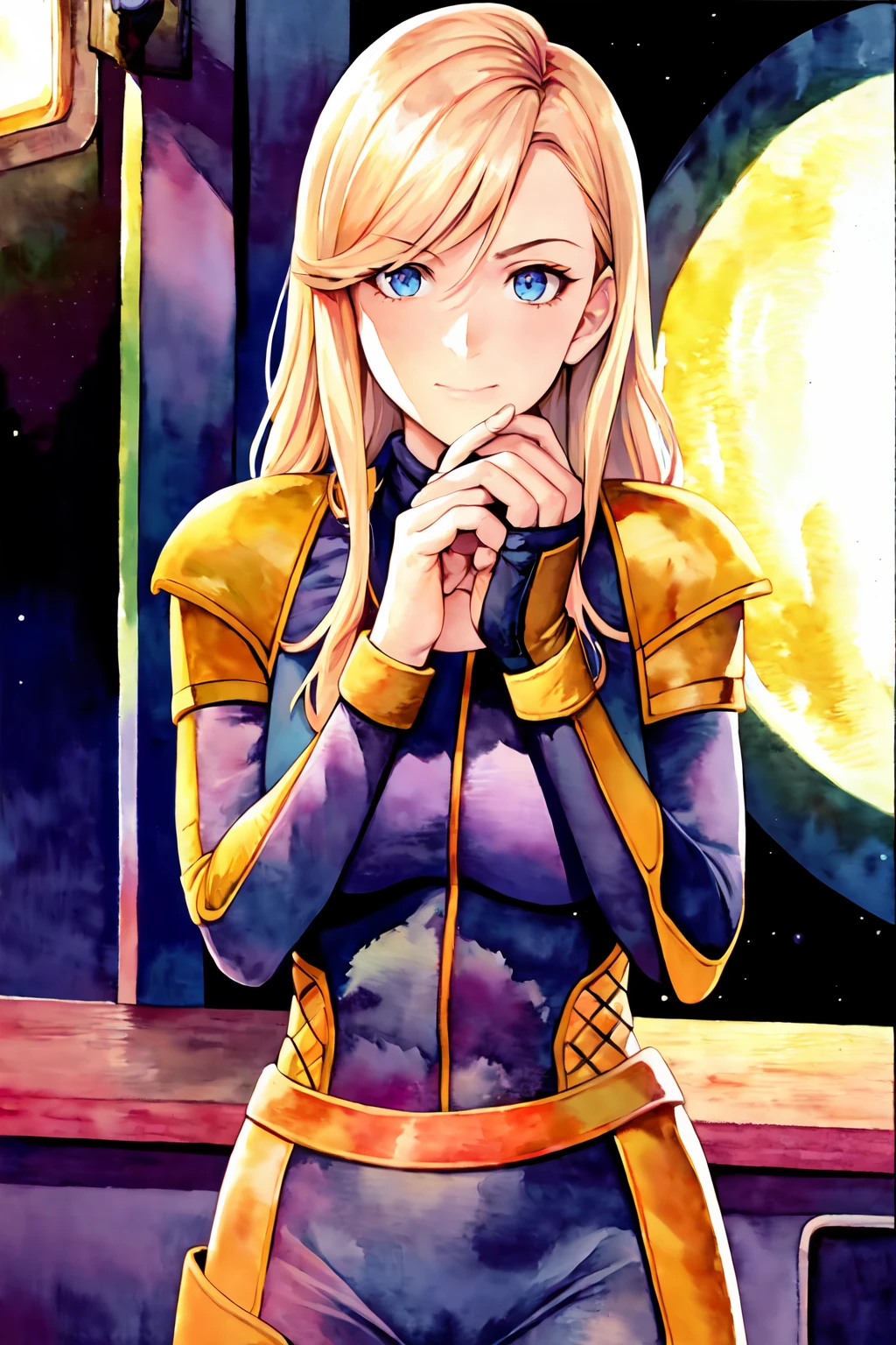 Guri the Human Replica Droid from Star Wars Shadows of the Empire. Trigger is "GuriSW", for her comic outfit "bodysuit,armor,shoulder pads,knee pads".