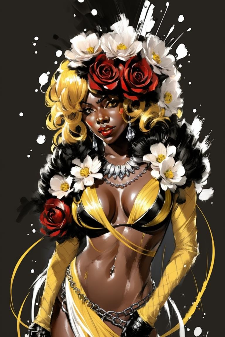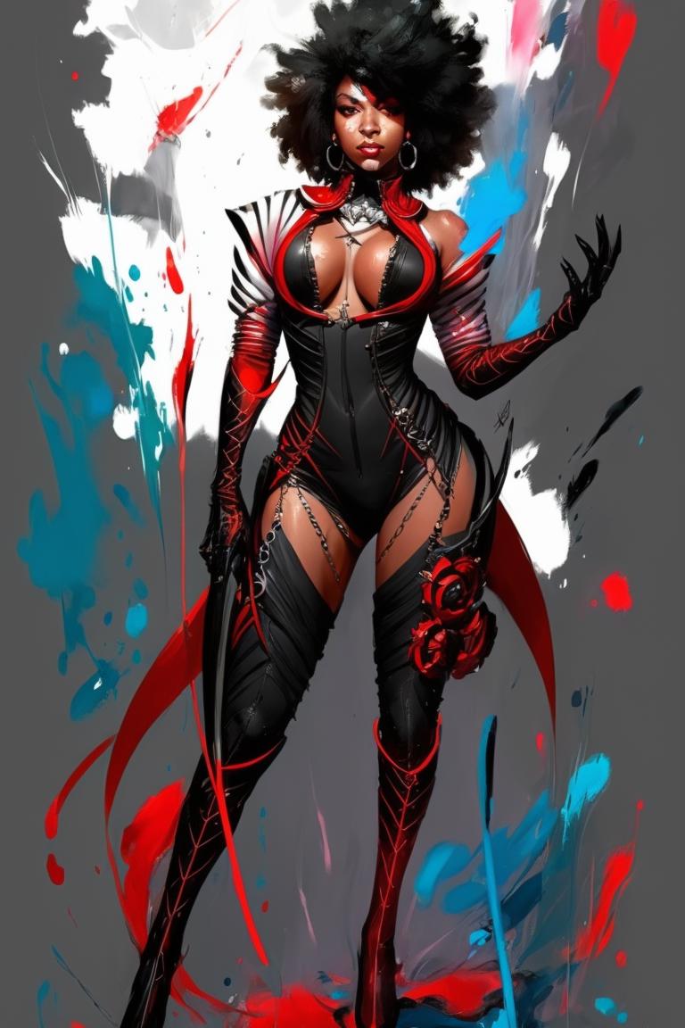 Most of the trained images contains tattoos, jewelry, stamps, and detailed equipment of scifi fantasy fashion;