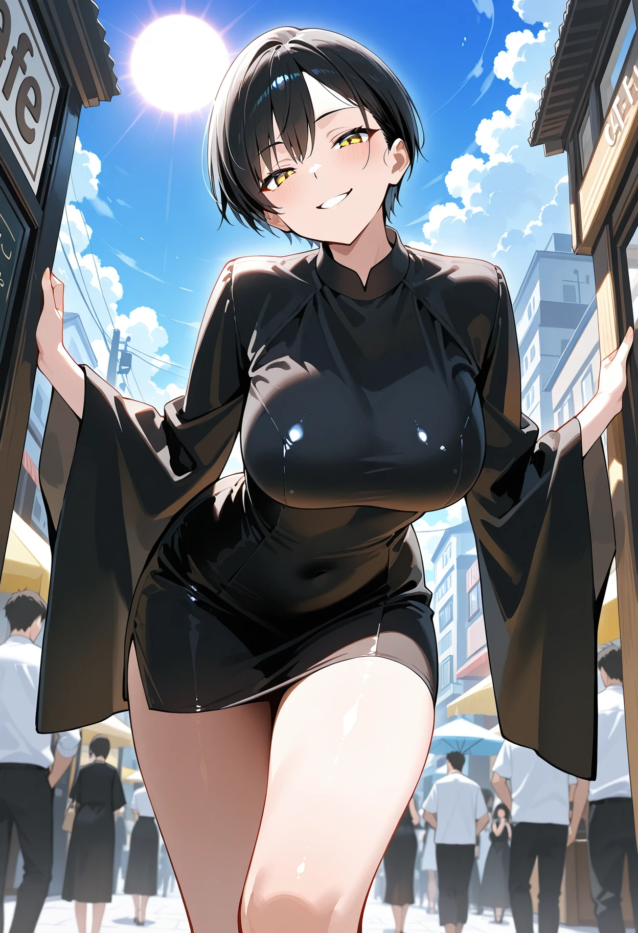 short dress,satin dress,long sleeves,raglan sleeves,wide sleeves,