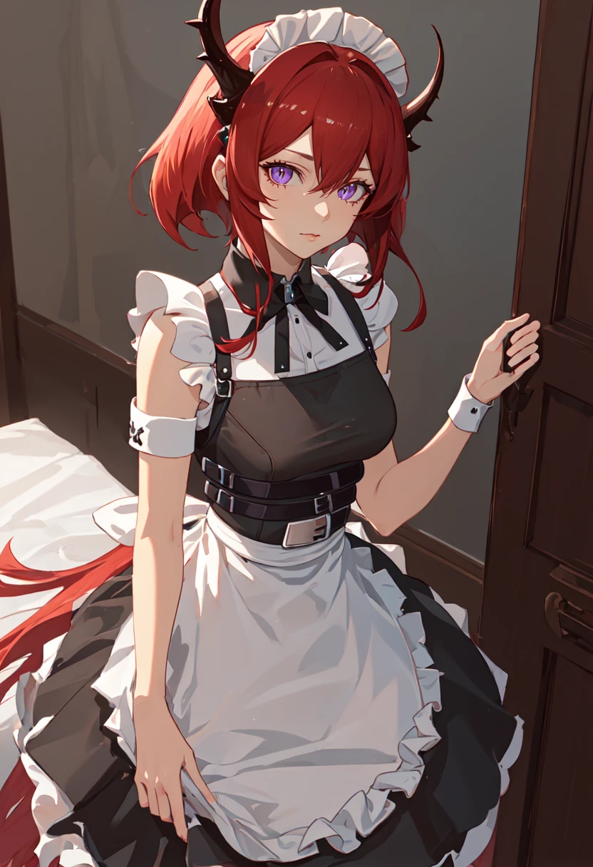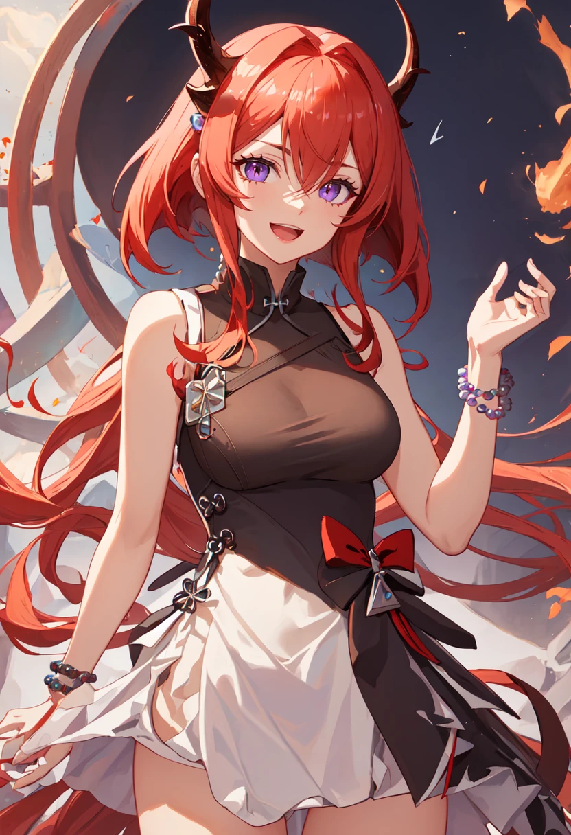 • Recommended tags for character: red hair, horns, long hair, purple eyes, breasts, very long hair, hair between eyes, demon horns, medium breasts. You can add them to the prompt when some features of waifu (e.g. hair color) are not stable.