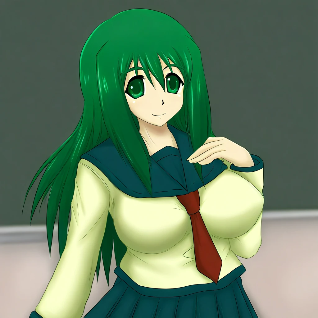 tisel(A);elsain2,tsl1,green eyes,green hair,long hair,large breasts
