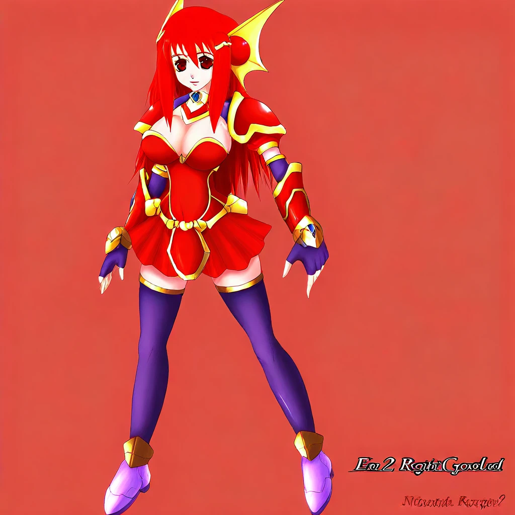 elsain(A);elsain2,el1,red eyes,red hair,long hair,redgold hair ornament,large breasts,cleavage,elbow gloves,fingerless gloves,skirt,zettai ryouiki,thighhighs,boots,armor