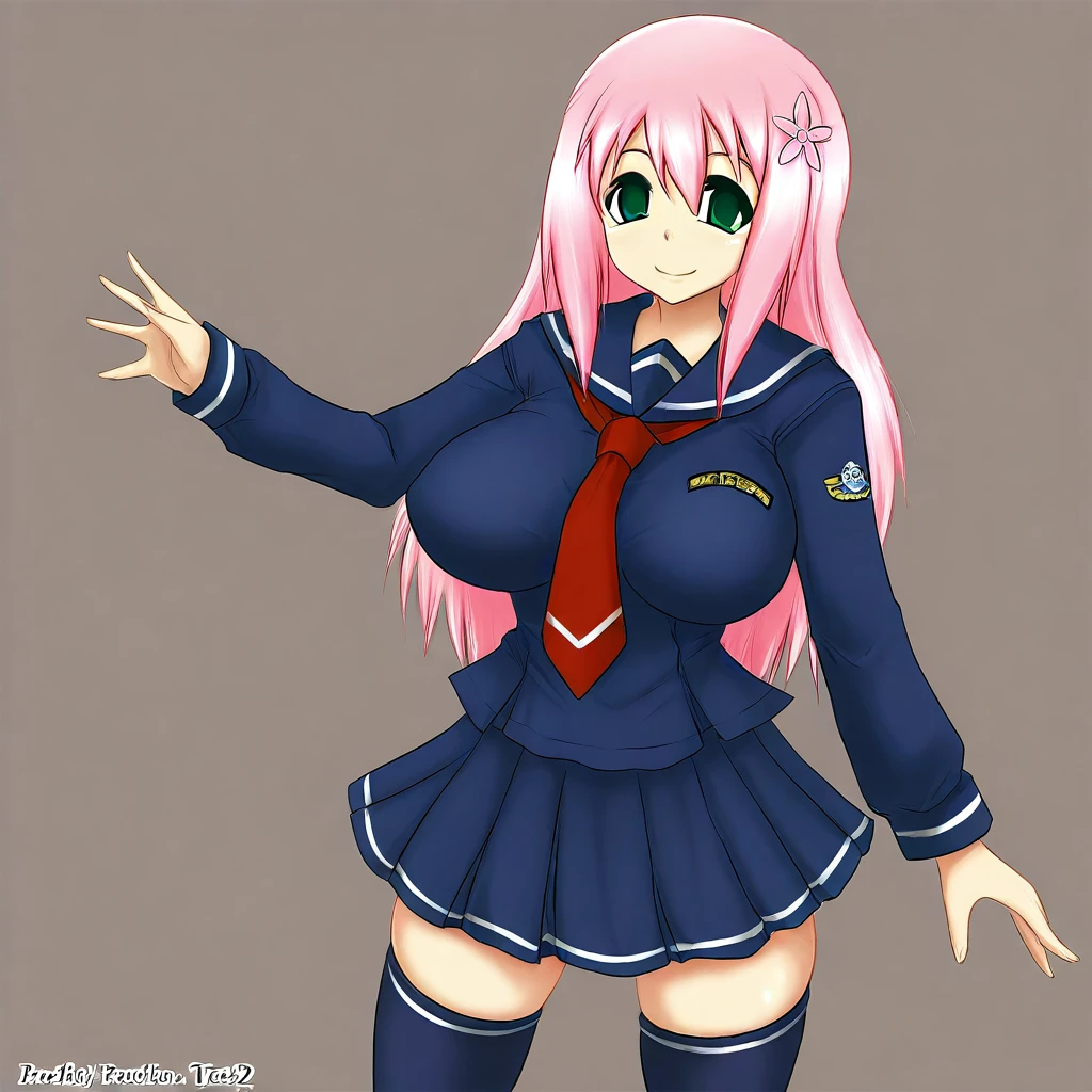 tisel(B);elsain2,tsl2,green eyes,pink hair,long hair,large breasts