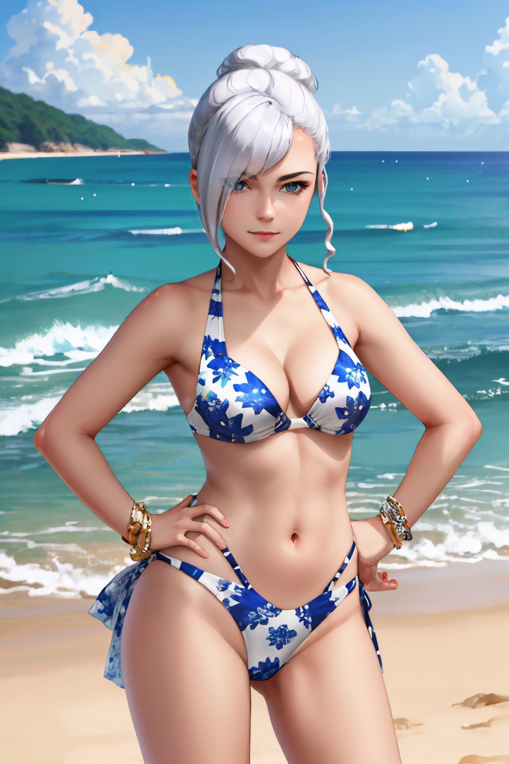 Trigger + Appearance: rwbywinter, hair over one eye, single hair bun