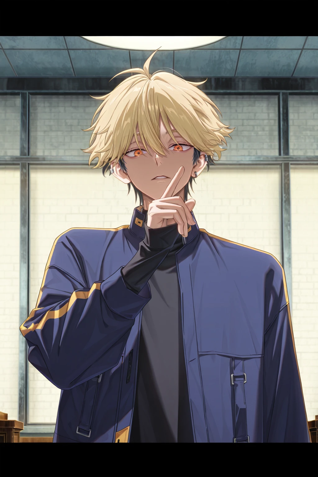 xia fei, blonde hair, orange eyes, two-tone hair,