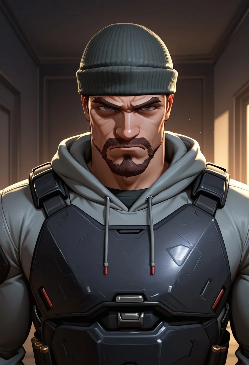 GabeReyes, 1boy, broad shoulders, mature male, human, brown hair, facial hair, full beard, hazel eyes, athletic build