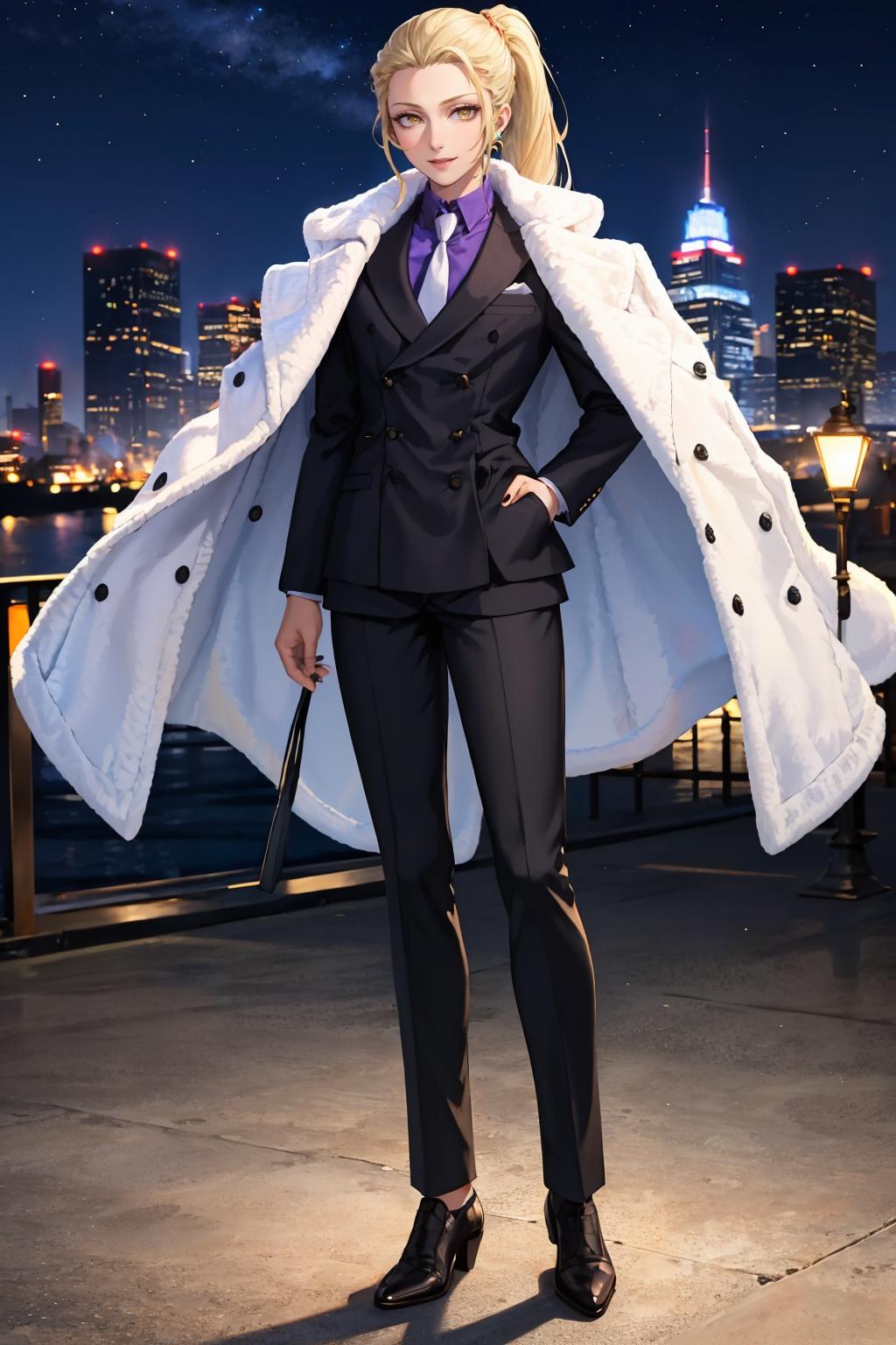 Tags: madamginkods, blonde hair, ponytail, necktie, suit, fur coat, yellow eyes
