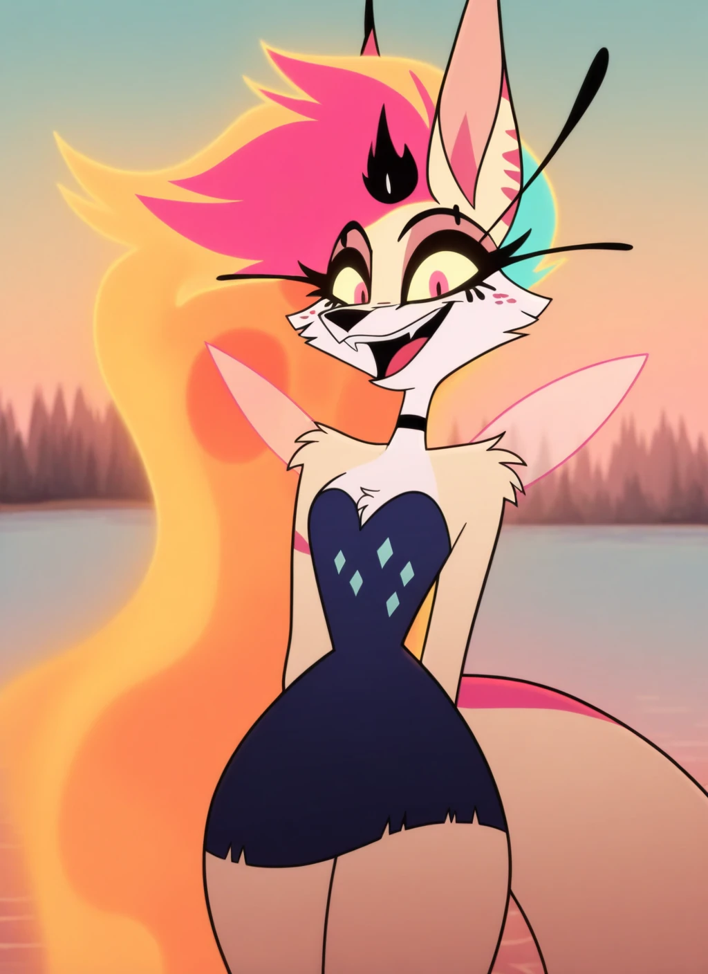 Beelzebub: blzb, anthro, furry, multicolored hair, aqua hair, pink hair, golden hair, liquid hair, tail, yellow sclera, pink eyes, wings // you could use 'four arms' but i dont recommend it