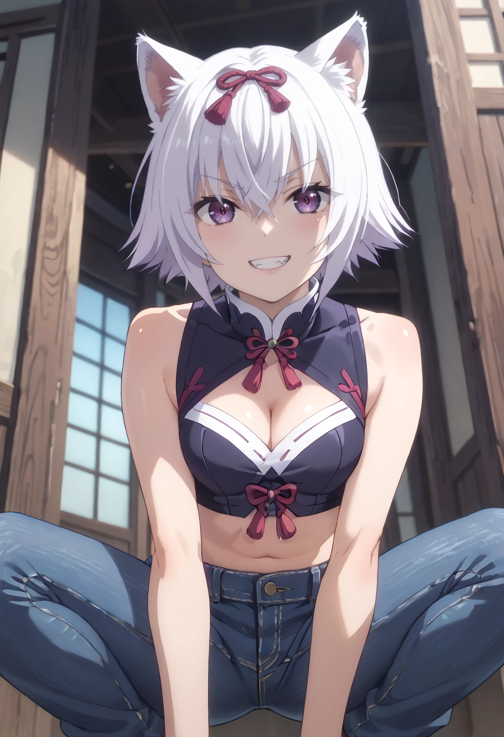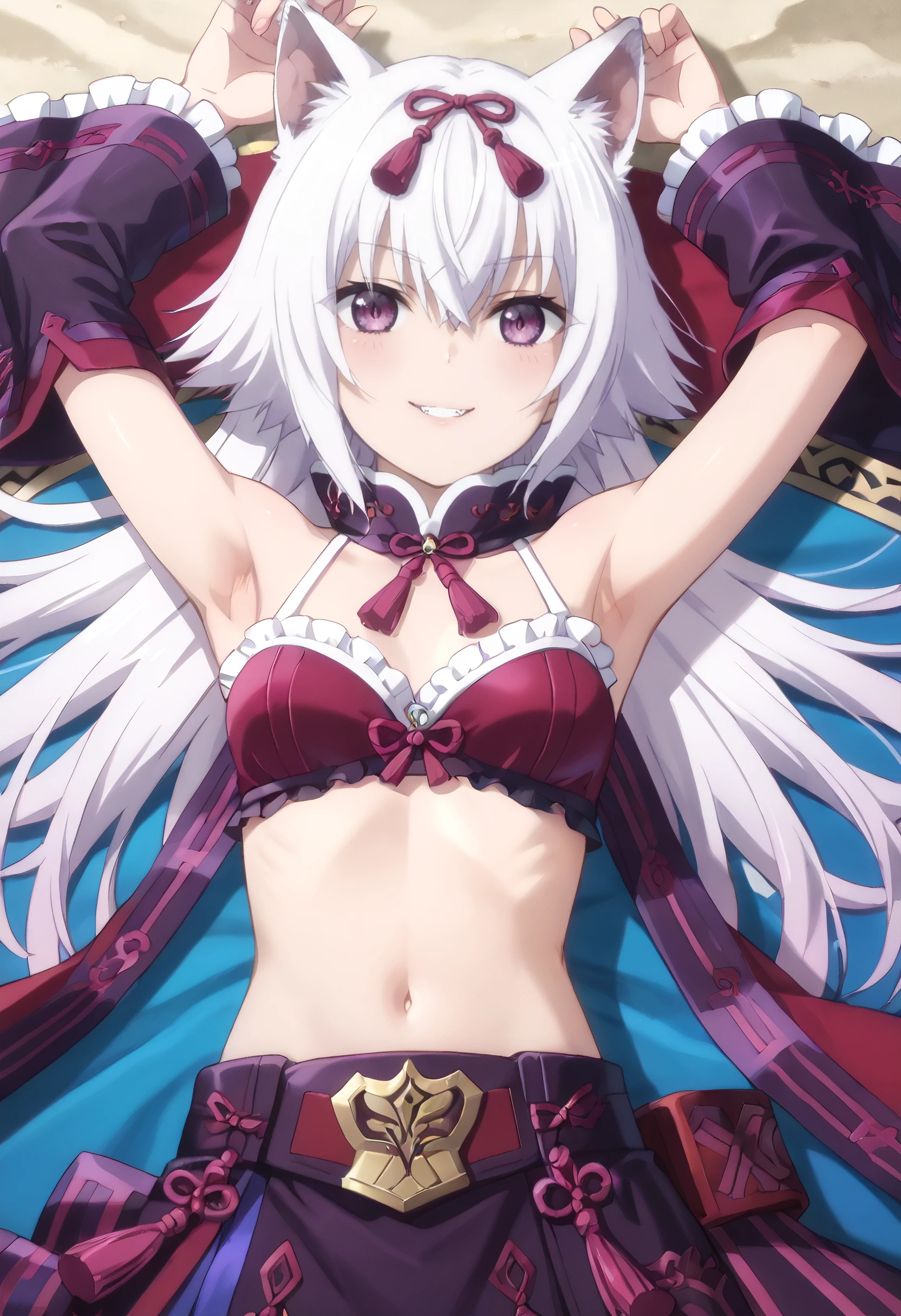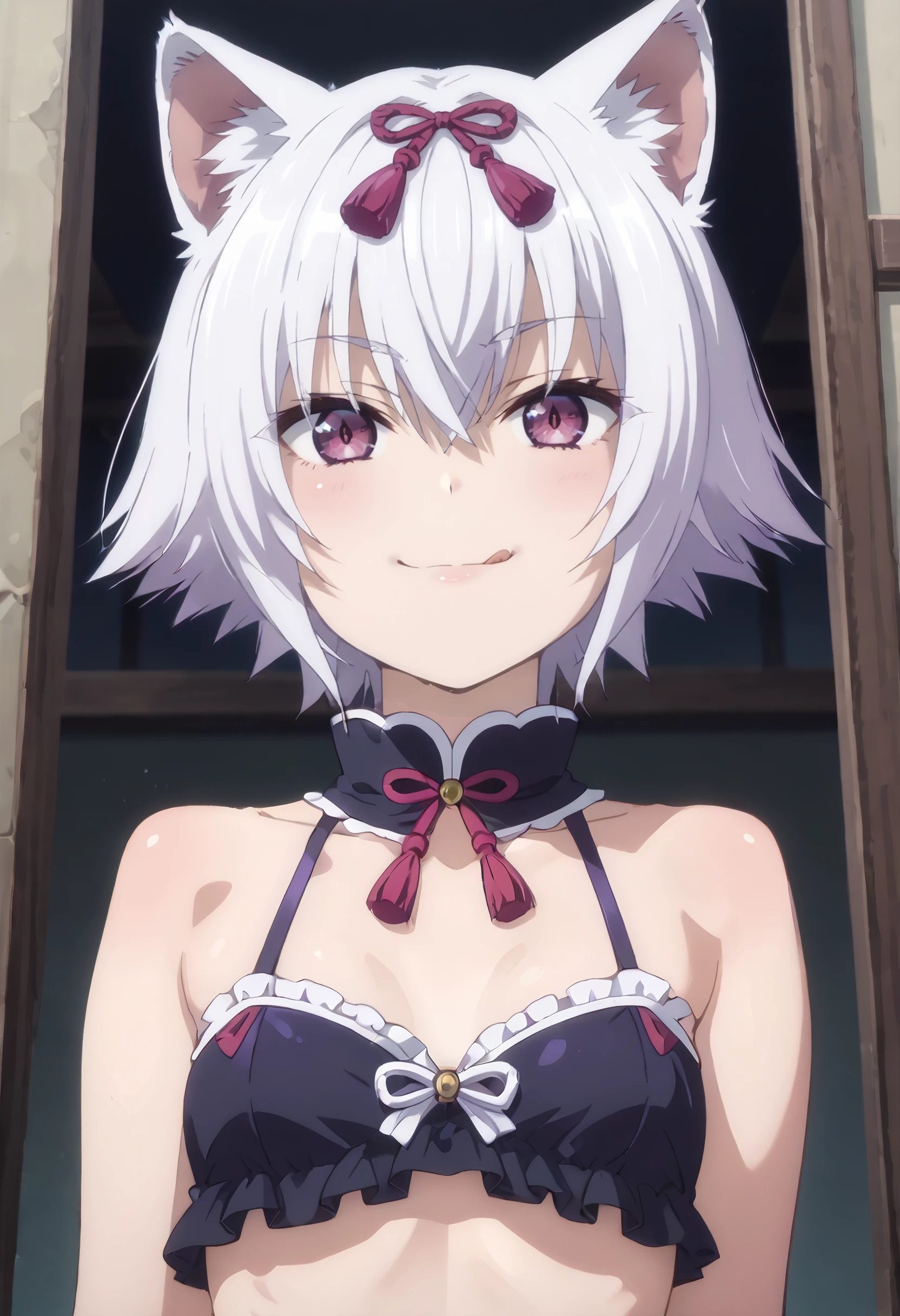 CKWShura, animal ears, bangs, eyebrows visible through hair, hair between eyes, white hair, purple eyes, short hair, wolf ears,