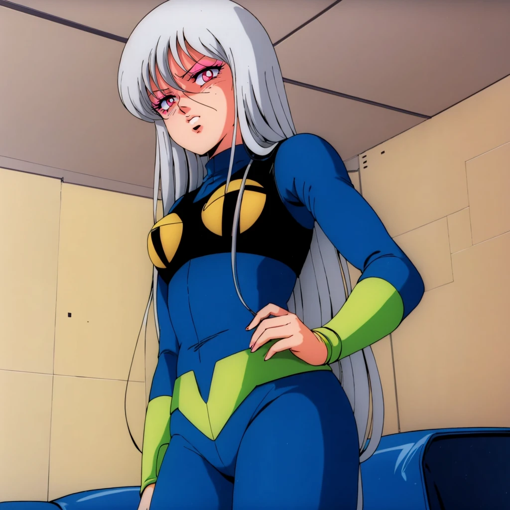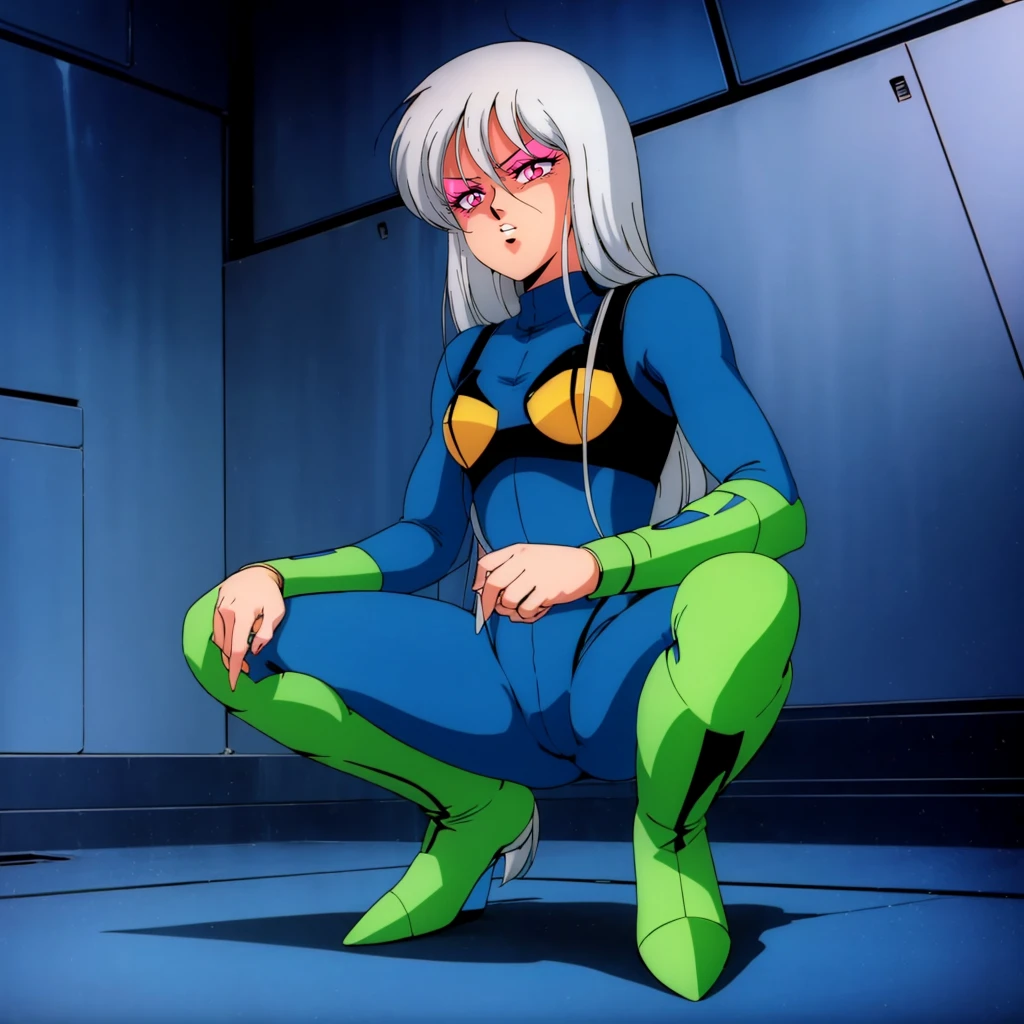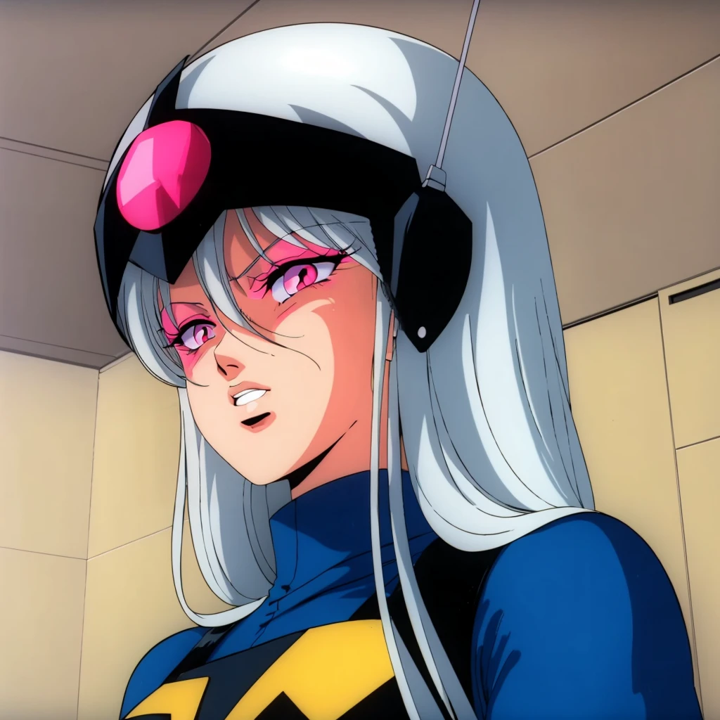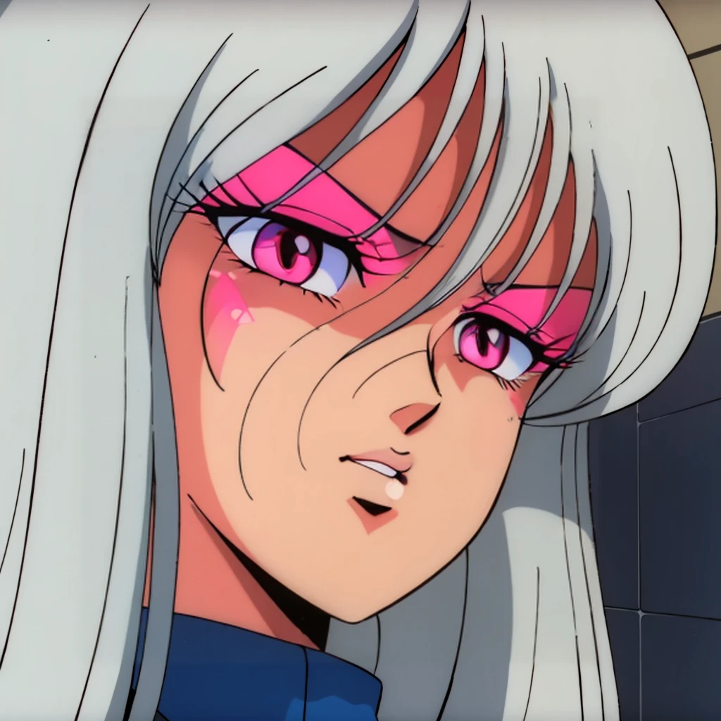 Cobalt,1girl,white hair,long hair,eyeshadow,pink eyes,retro artstyle,1980s (style),