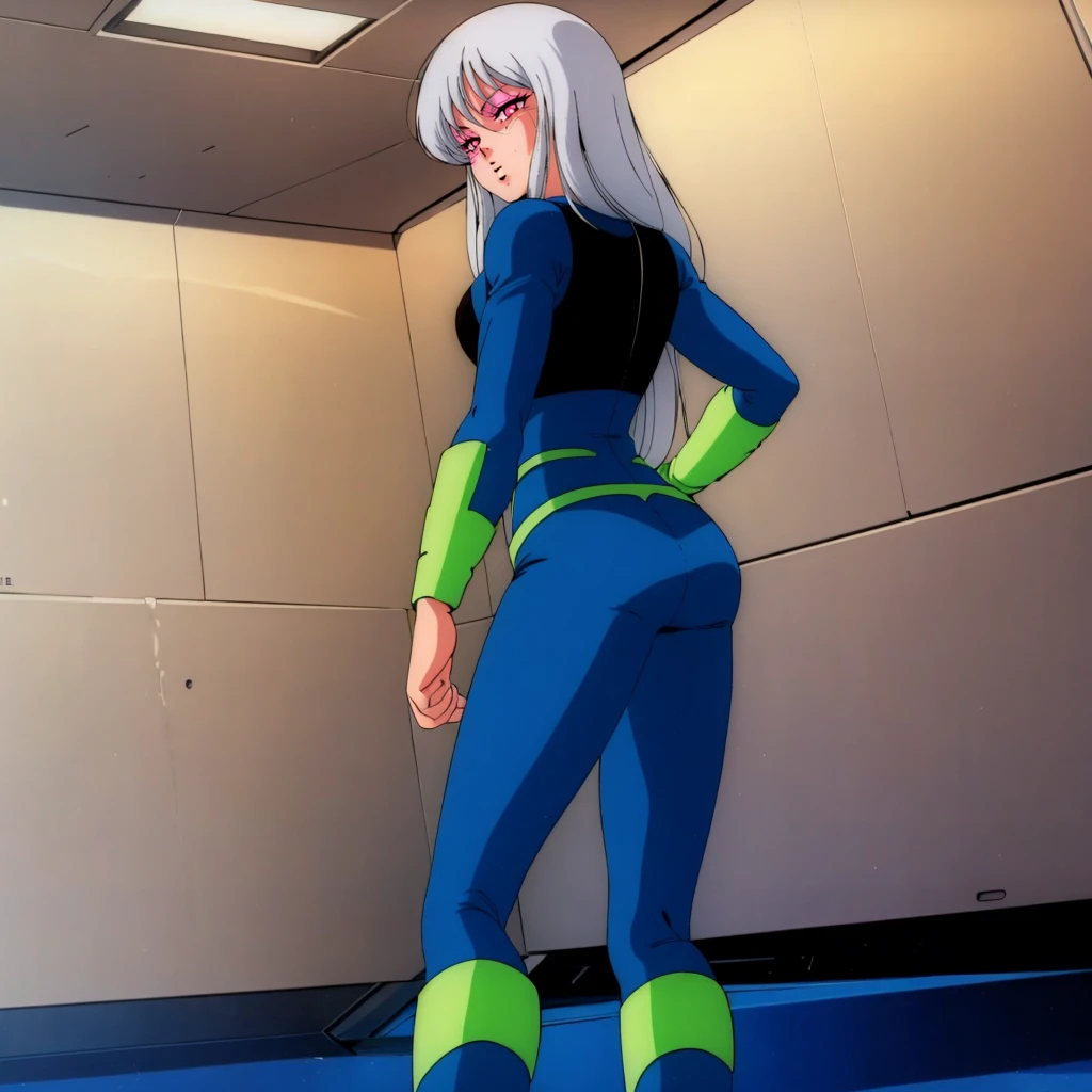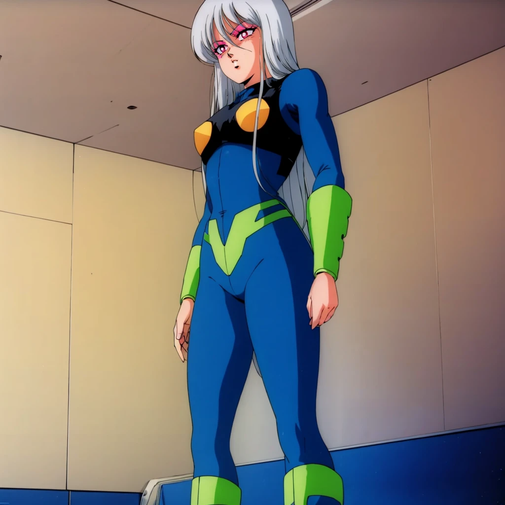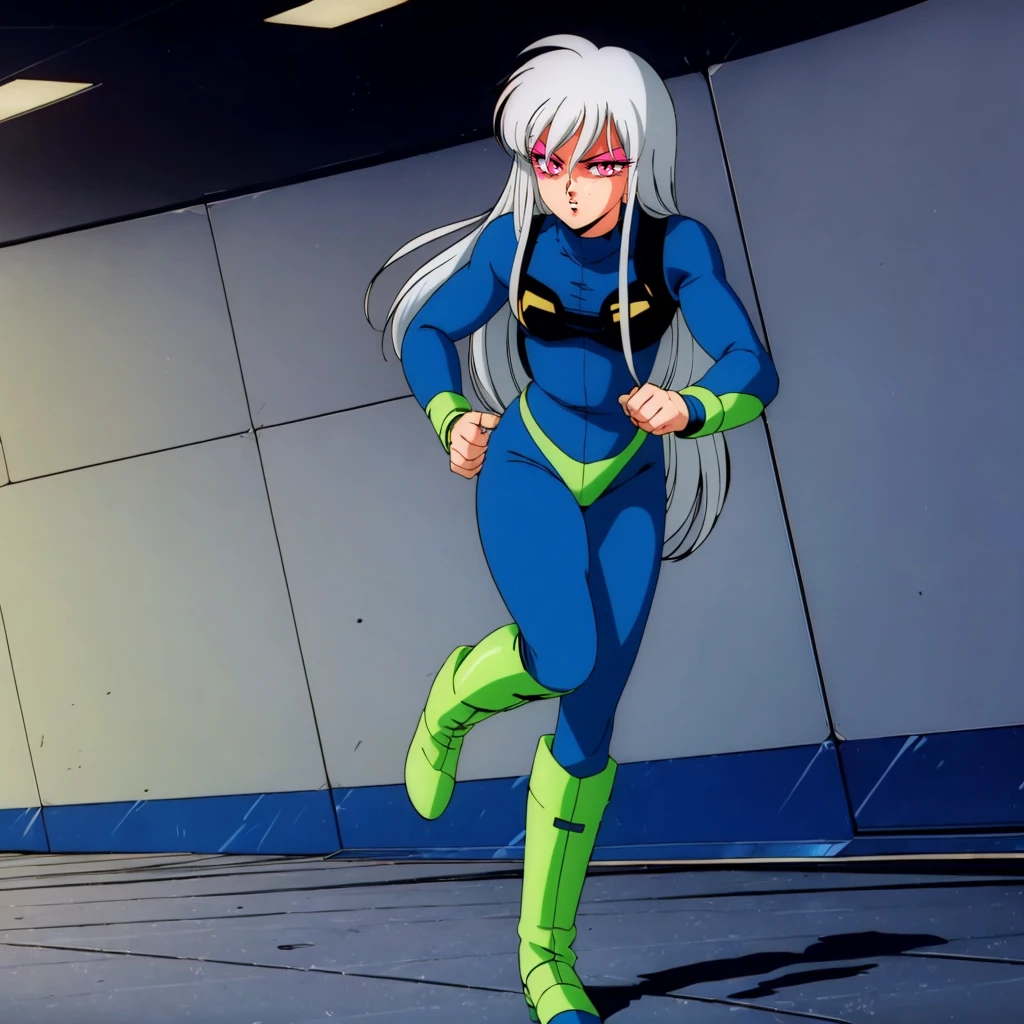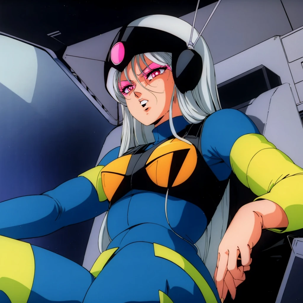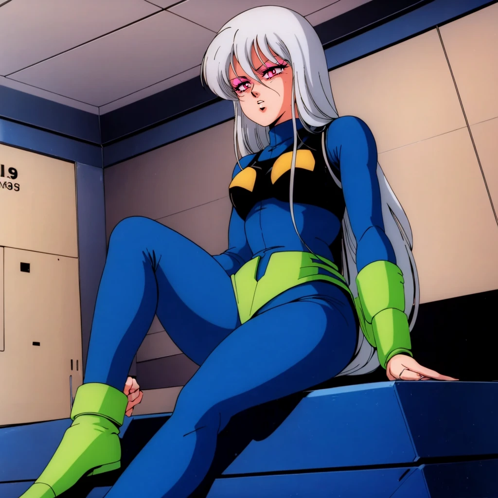 Cobalt,1girl,white hair,long hair,eyeshadow,pink eyes,retro artstyle,1980s (style),