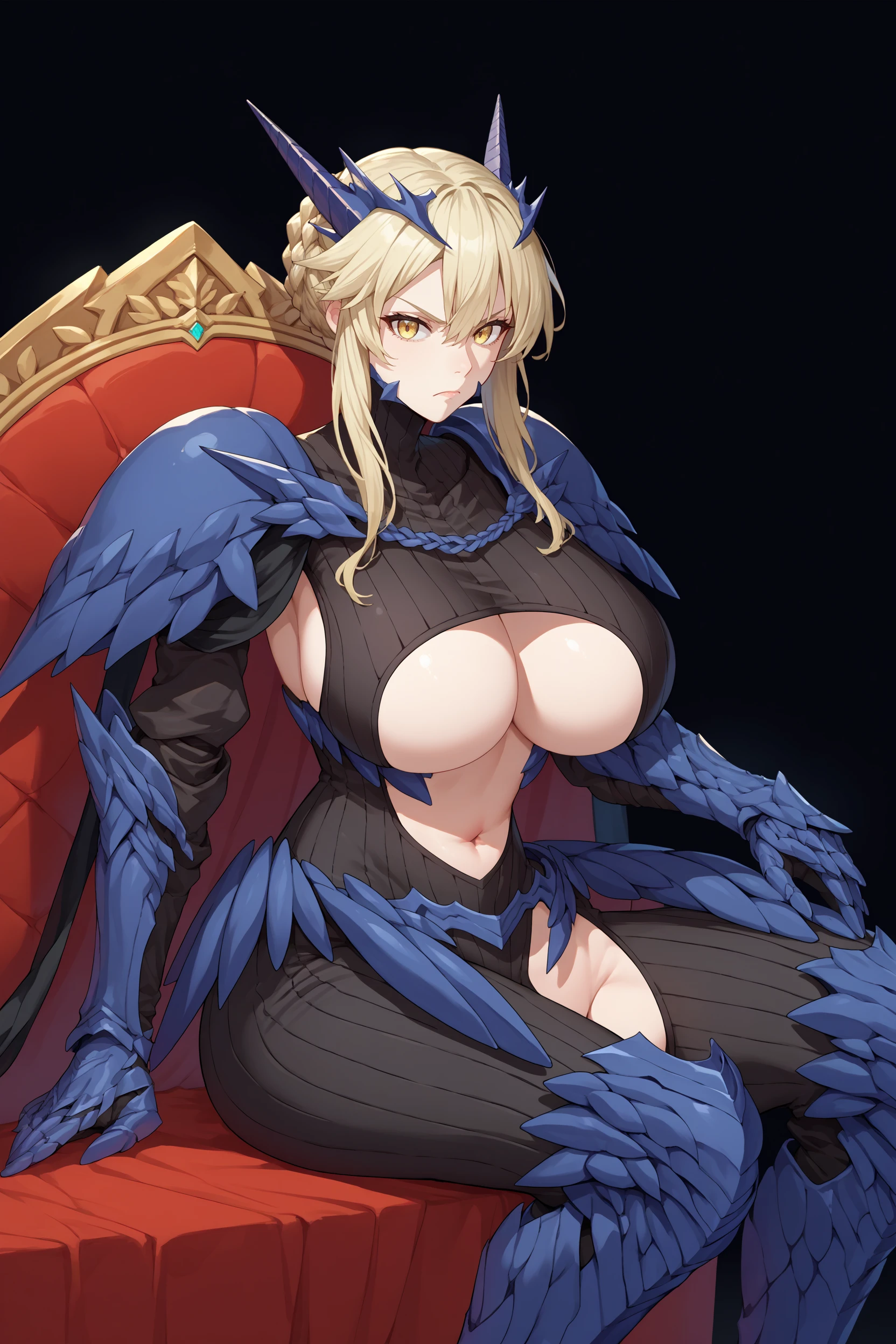Trigger word is "LAltr" and "pale skin, light blonde hair, braid, yellow eyes, horns" is required.