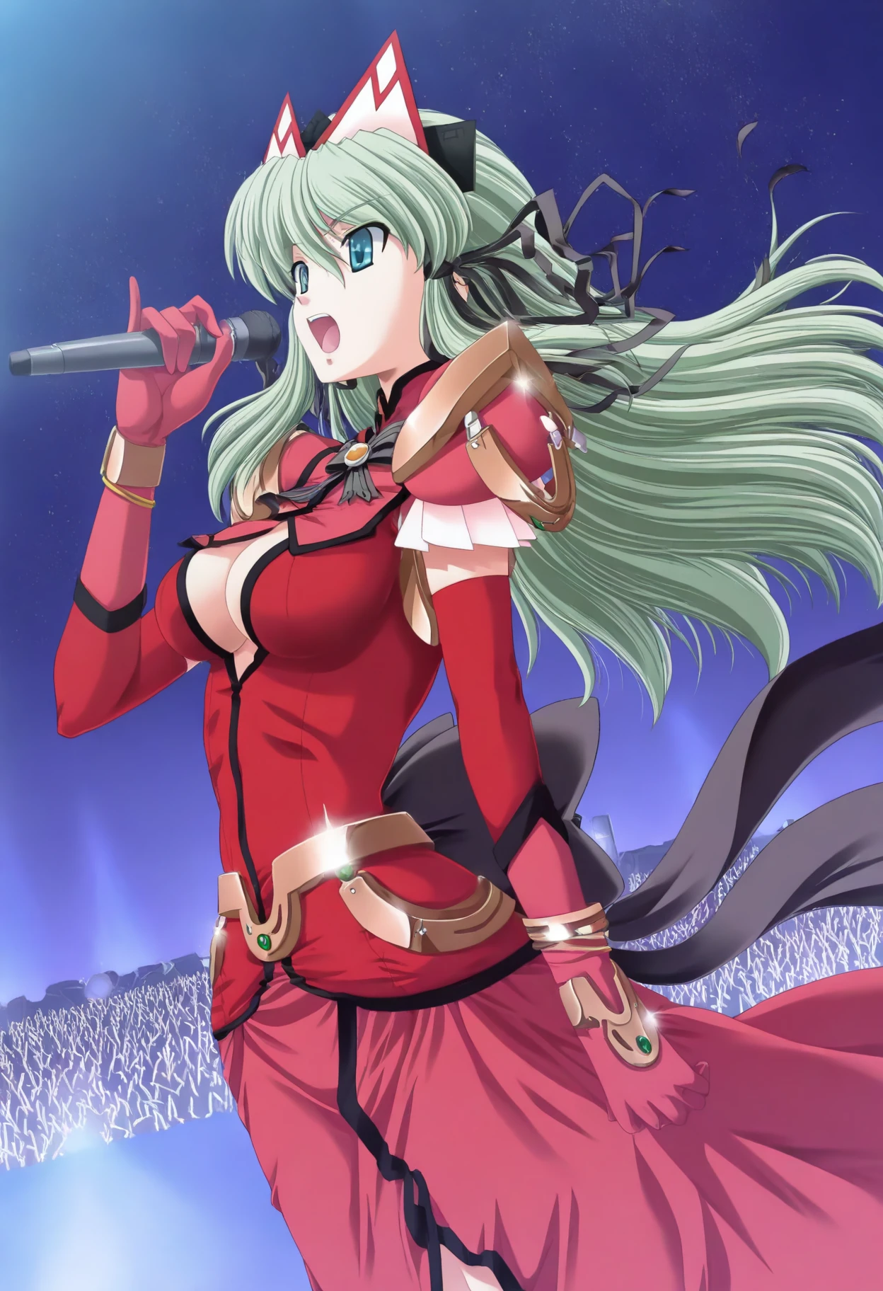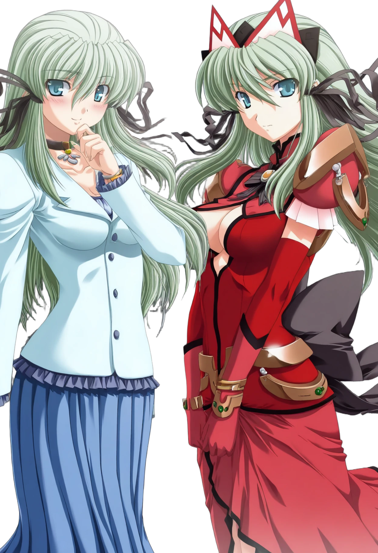 Triggerwords: c-eli, green hair, long hair, aqua eyes, large breasts, hair ribbon, tiara,