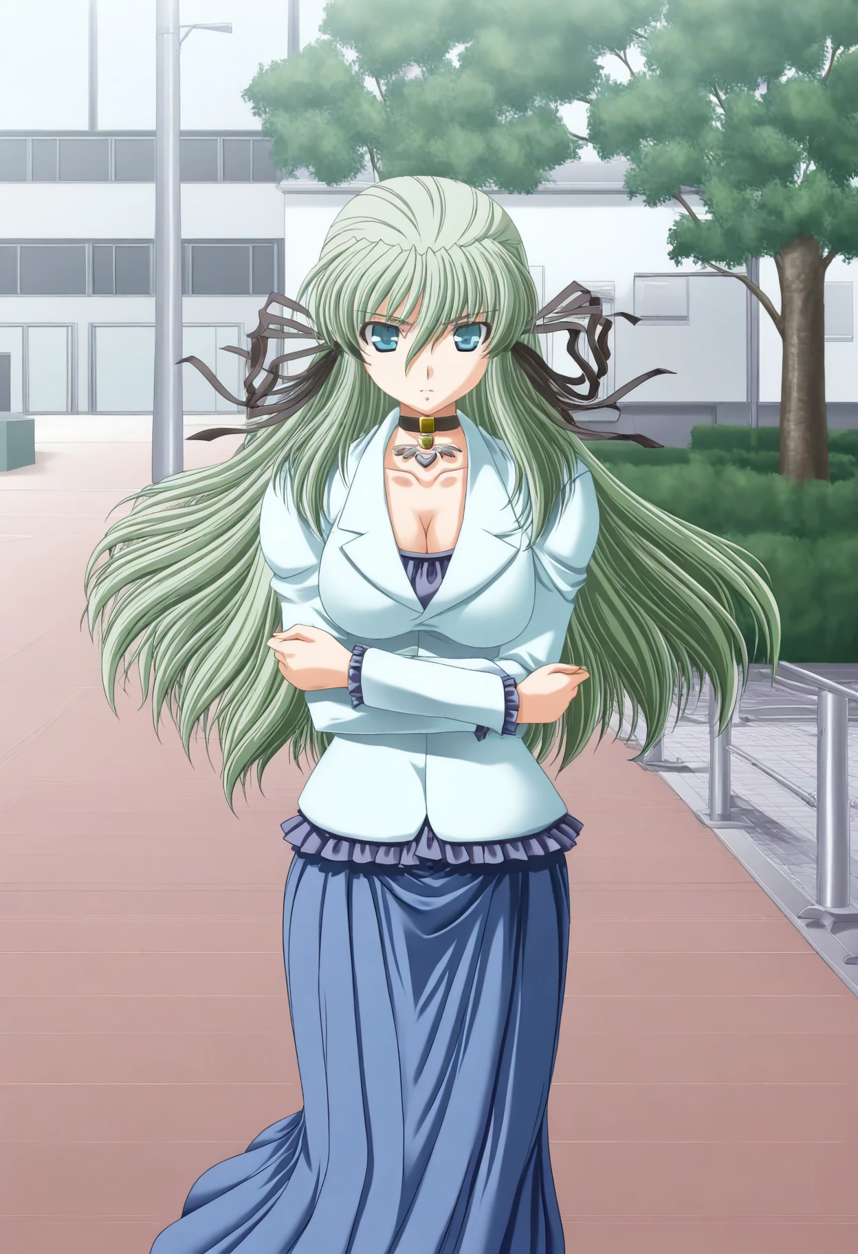 Triggerwords: c-eli, green hair, long hair, aqua eyes, large breasts, hair ribbon, choker,