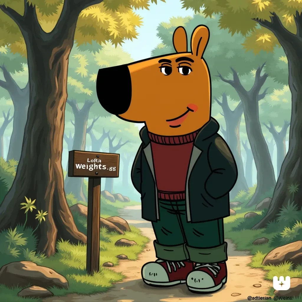 mikus-concept, hands hidden in pockets, big black nose, expressive eyes, standing