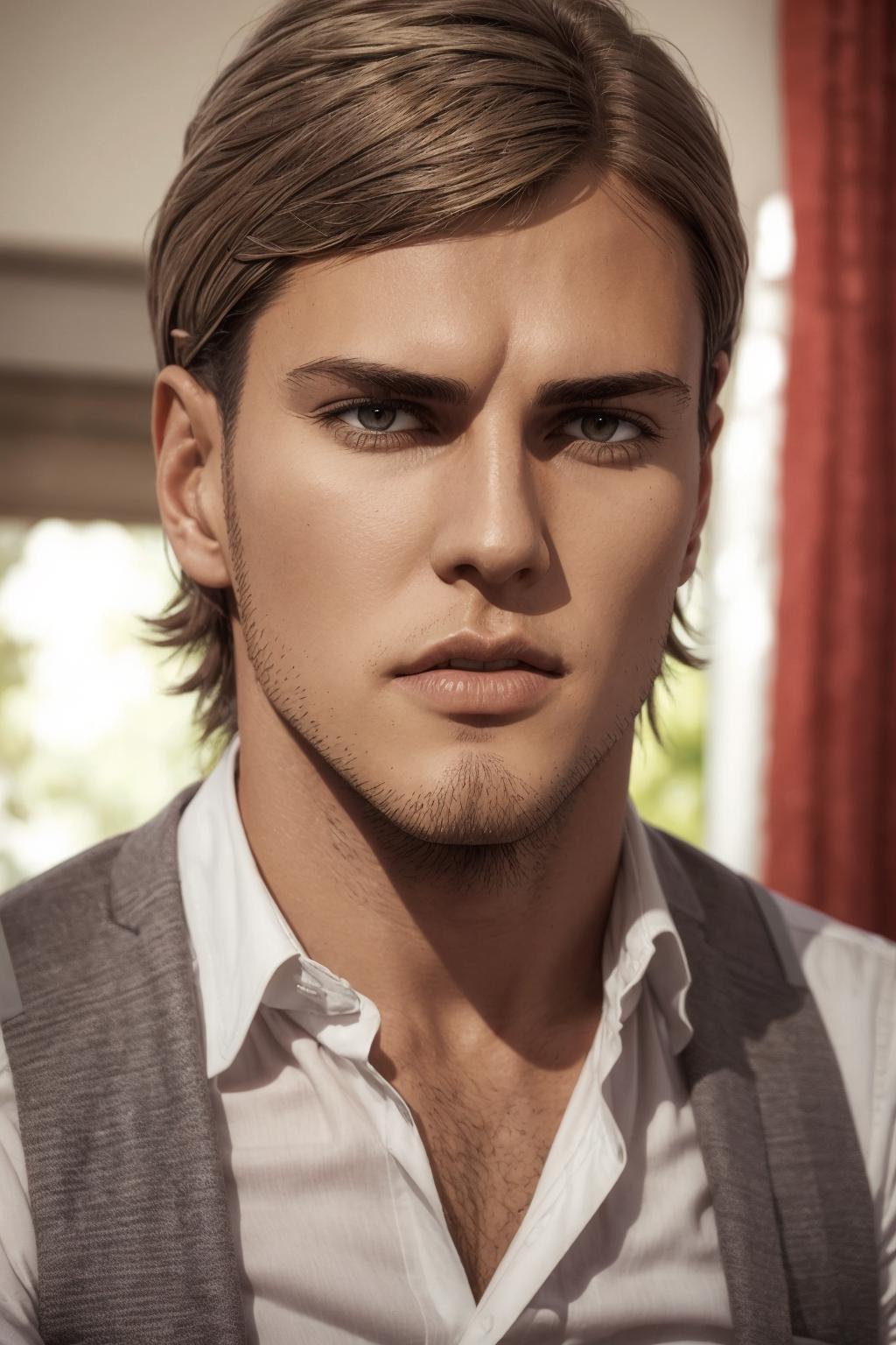 jean_kirstein, brown hair, brown eyes, stubble