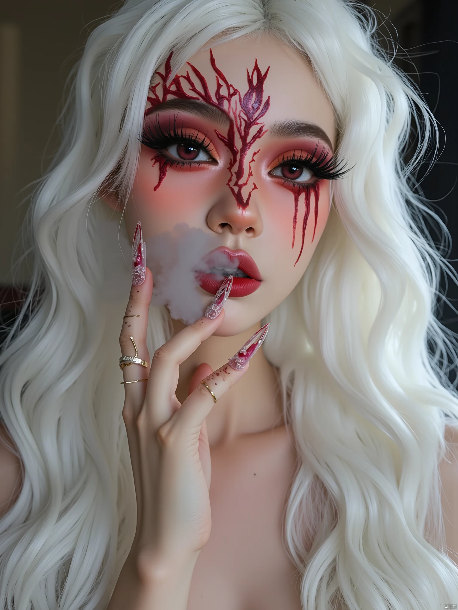 1️⃣Cheeks: You can use dark blush to create a three-dimensional effect, or add some terrifying patterns such as scars and bloodstains.