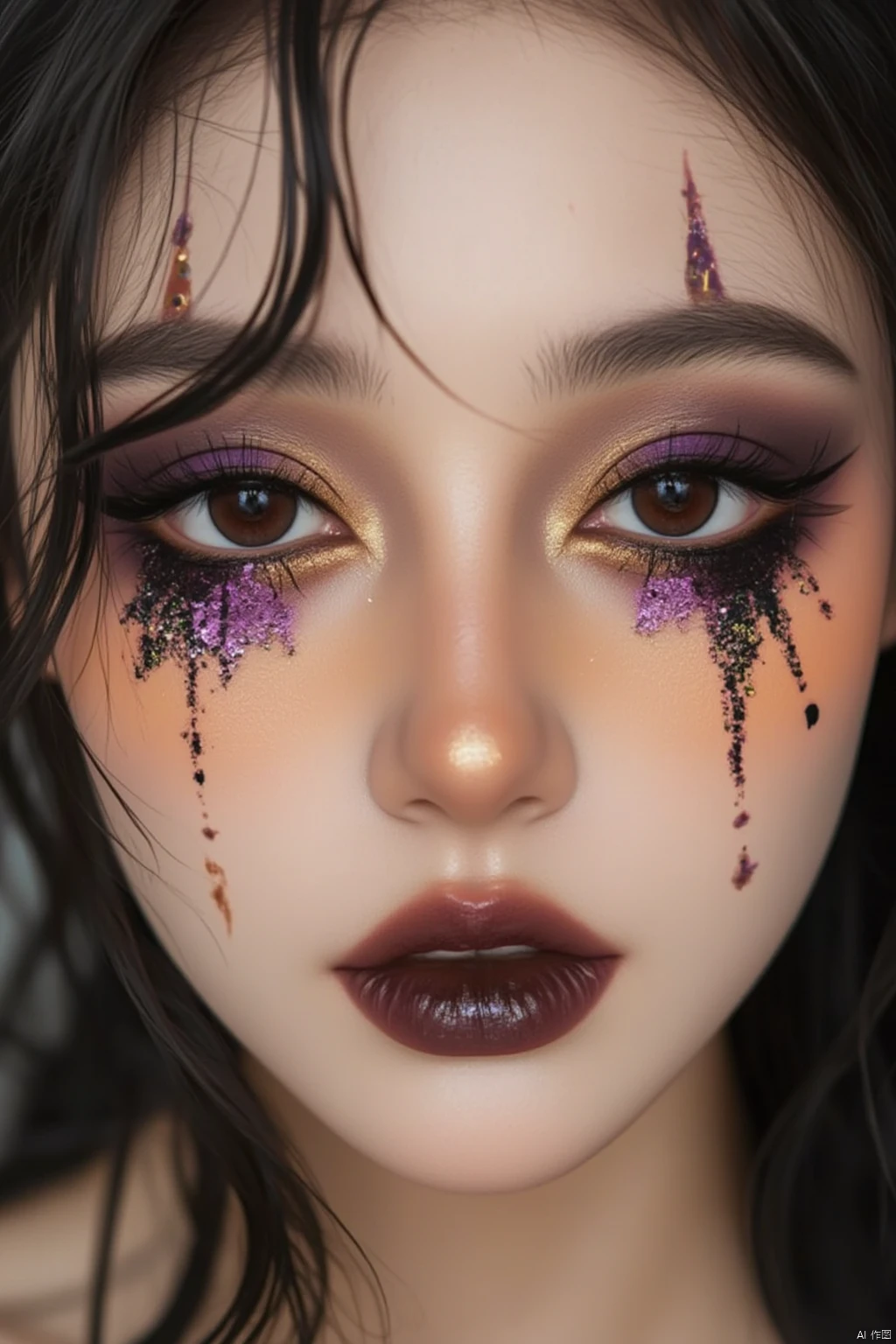 2️⃣Forehead: Stick some stickers or draw special symbols to increase the mysterious atmosphere. 3️⃣Eyelashes: Choose thick false eyelashes to make the eyes more deep and charming.