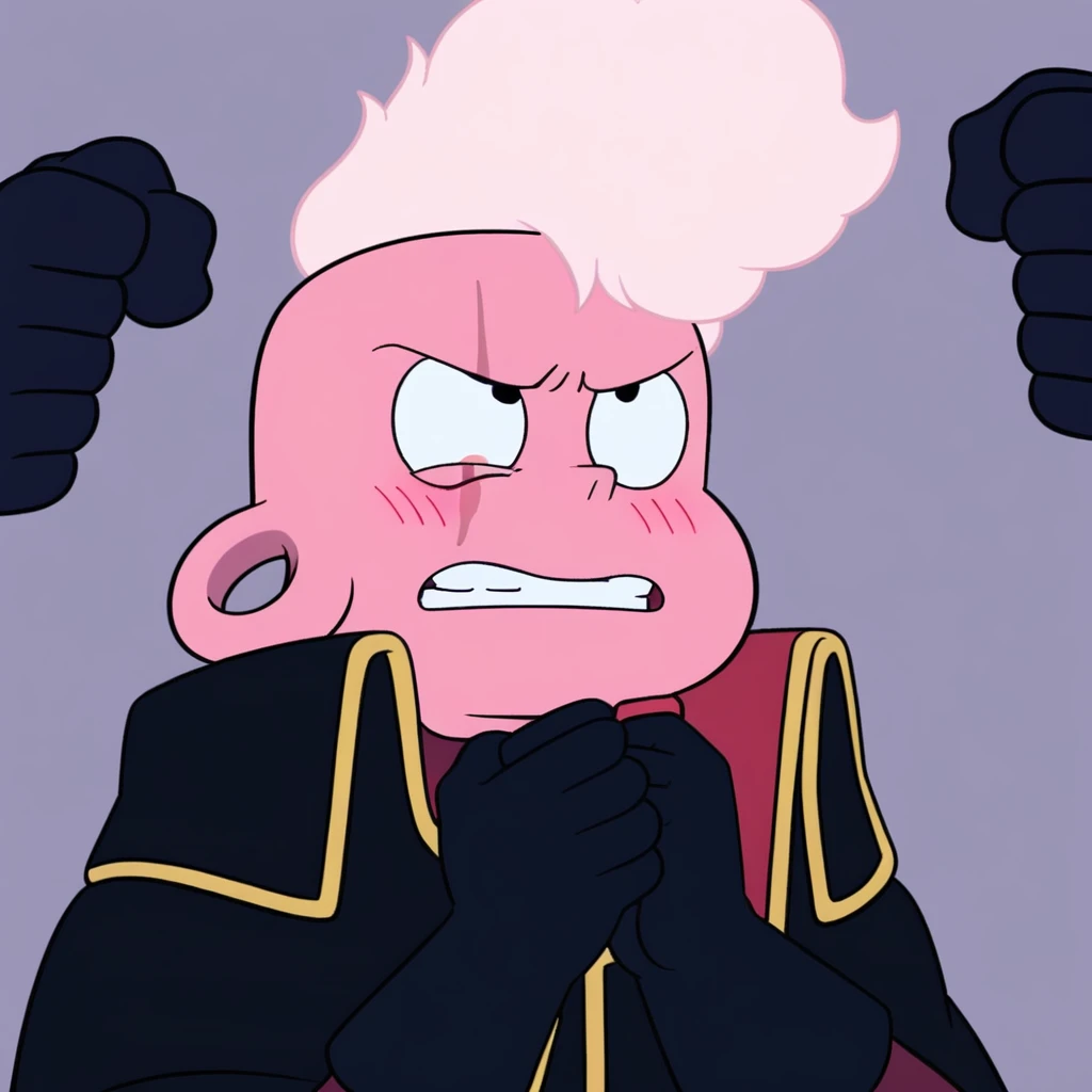 scar, gloves, black gloves, black eyes, male focus, pink skin