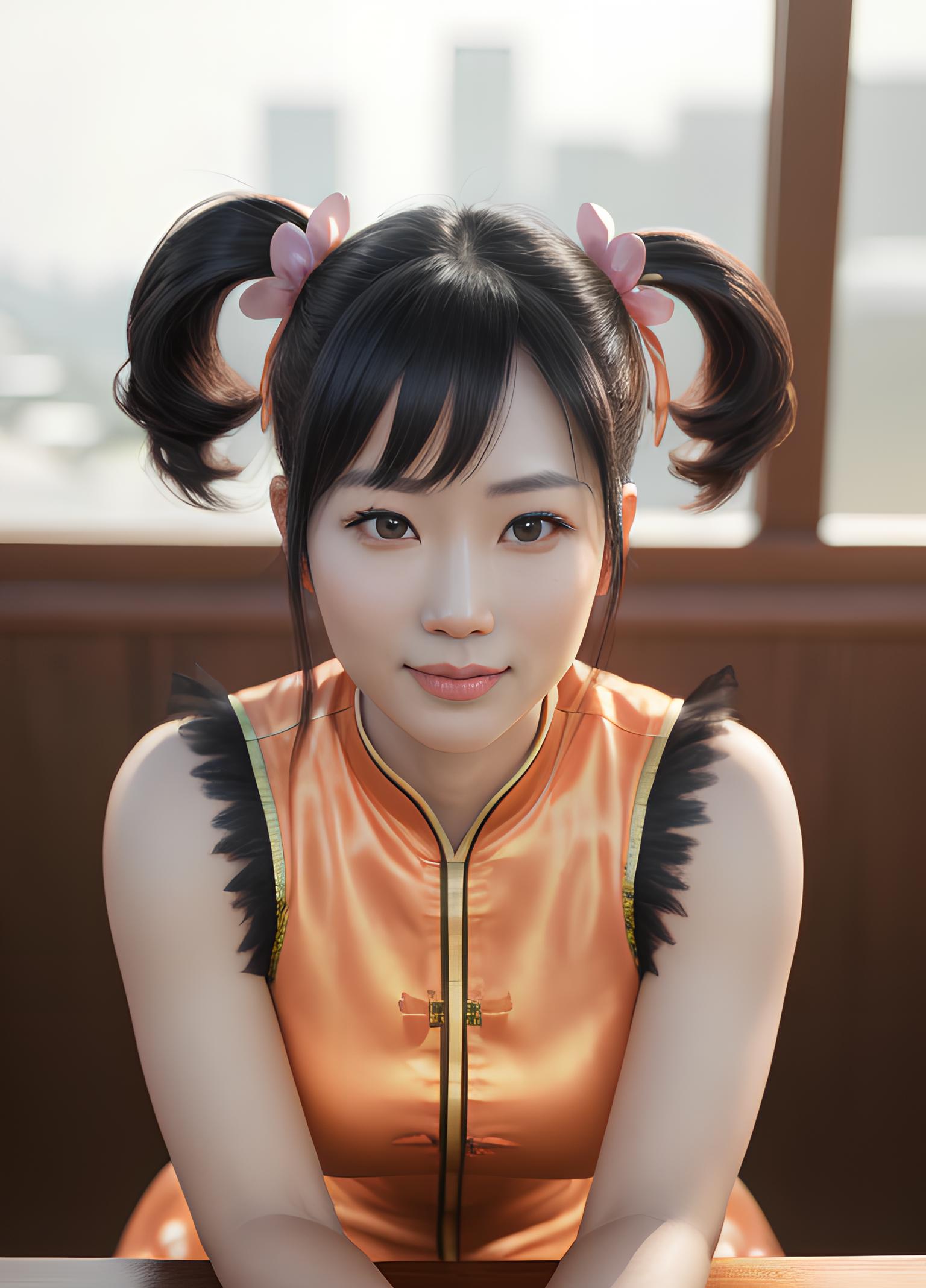 Orange China Dress: chinese clothes, orange china dress, sleeveless, jewelry, bracelet
