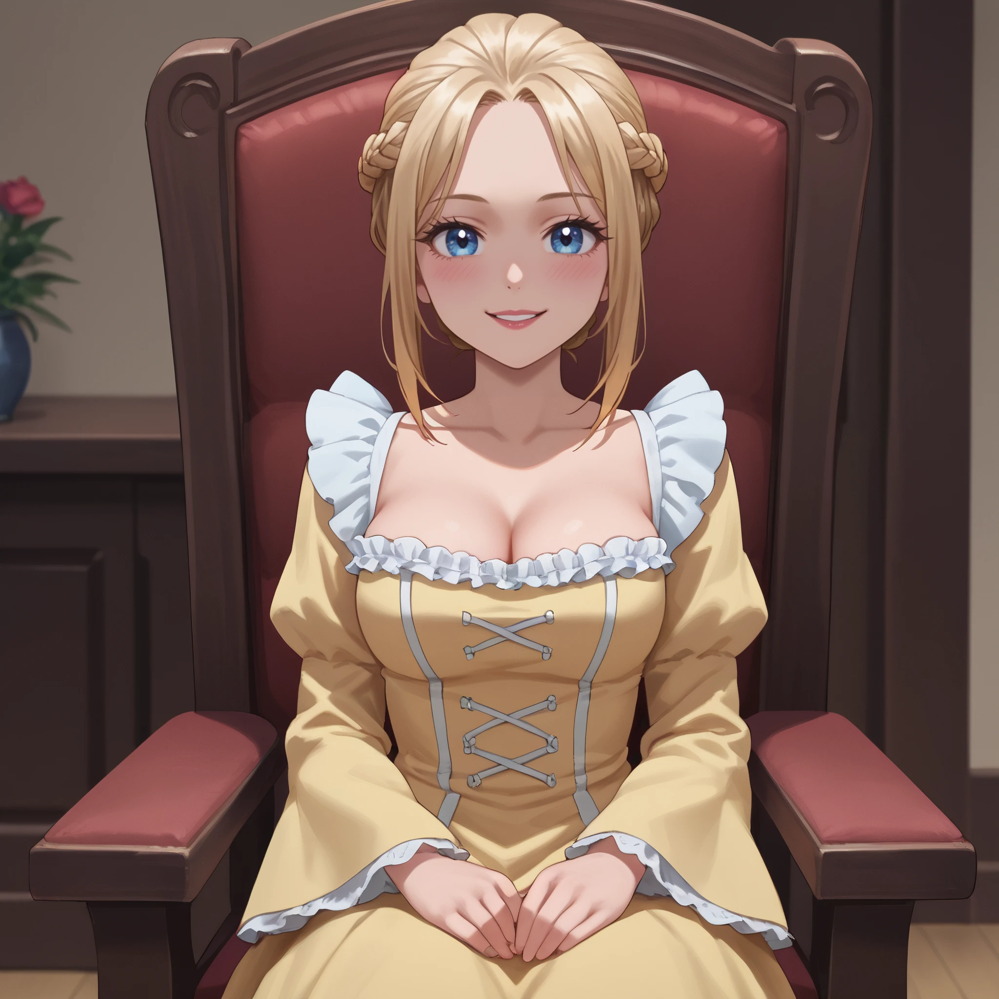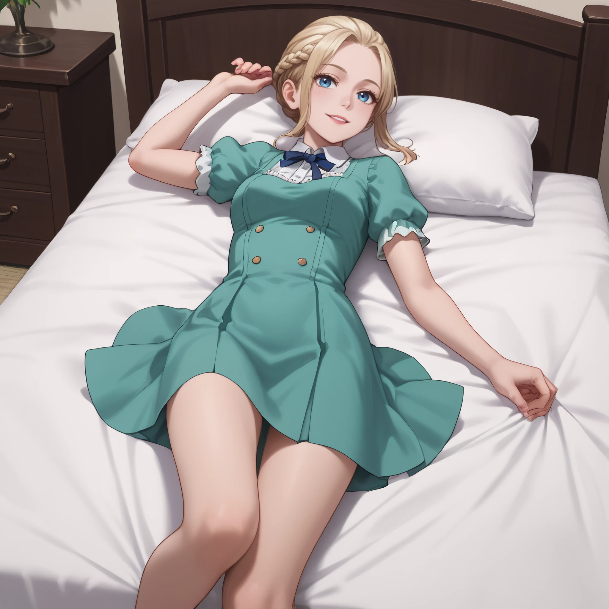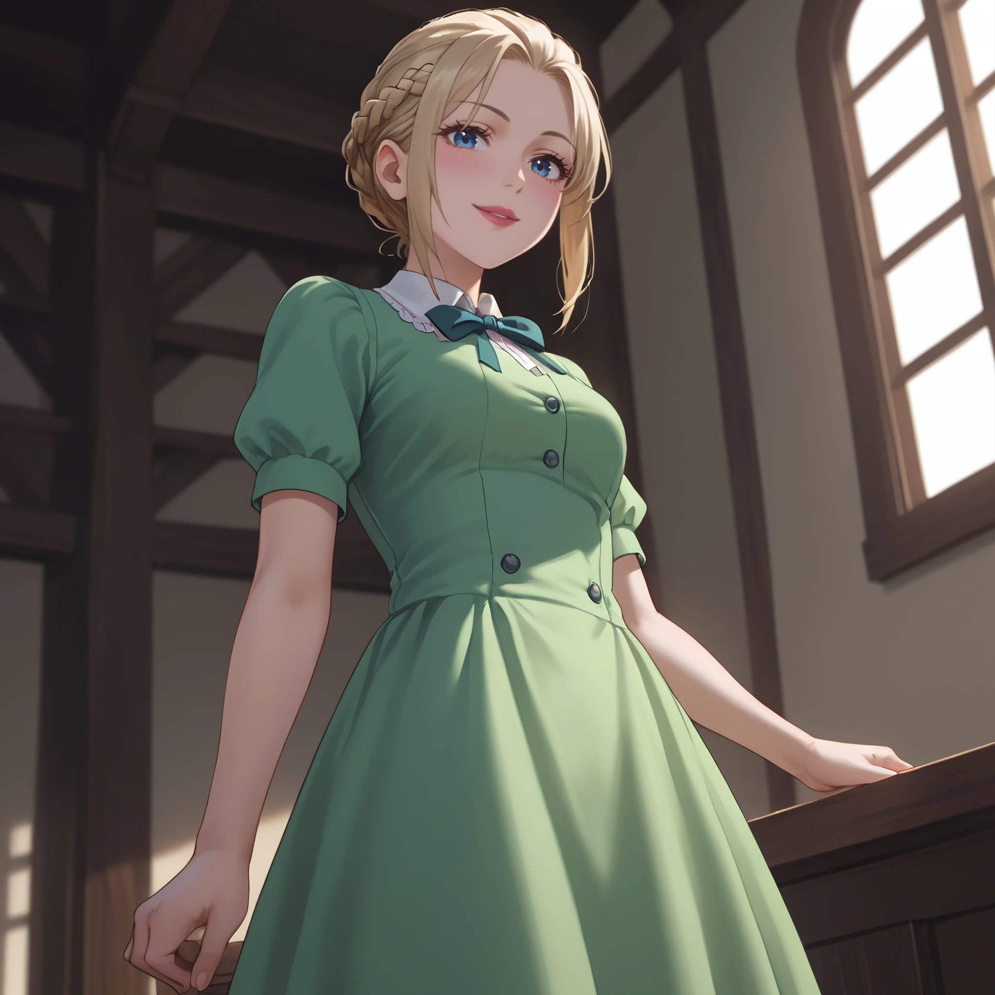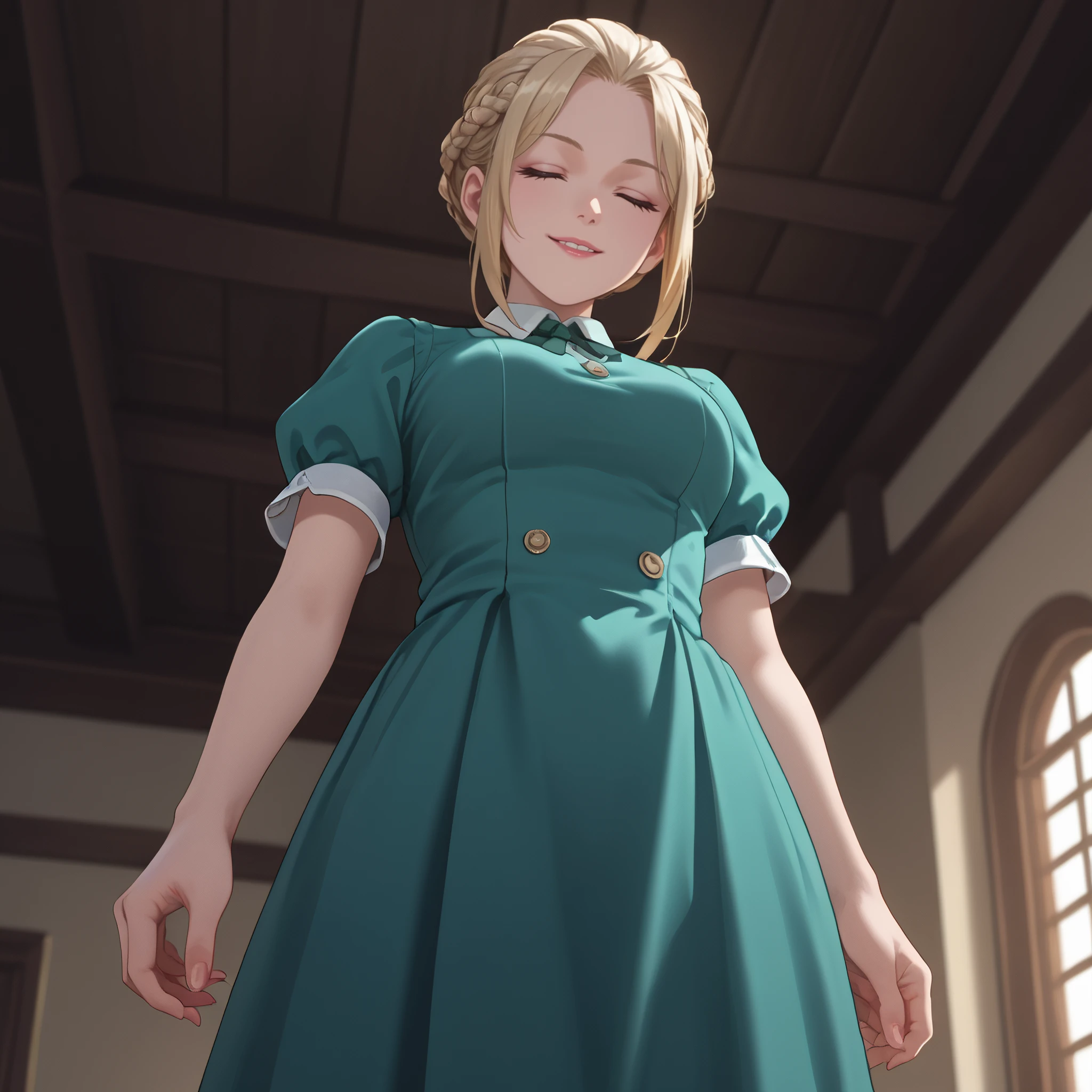 A4OCanaan, blonde hair, braid, short hair, blue eyes, french braid, sidelocks, hair bun, bangs,