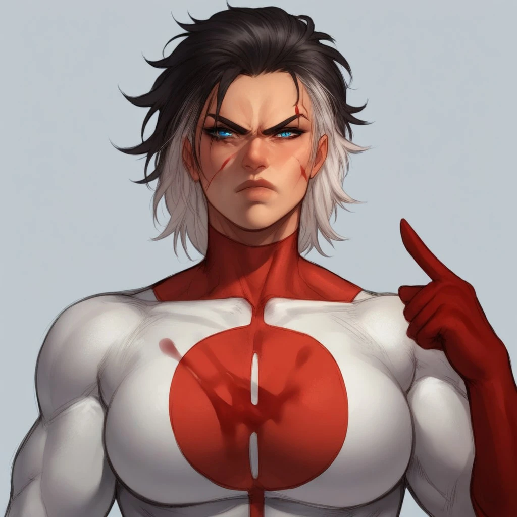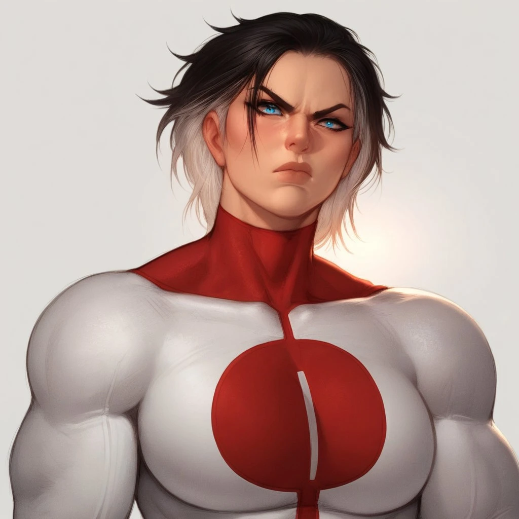 Nora, blue eyes, Multicolored hair, black hair, white hair,
