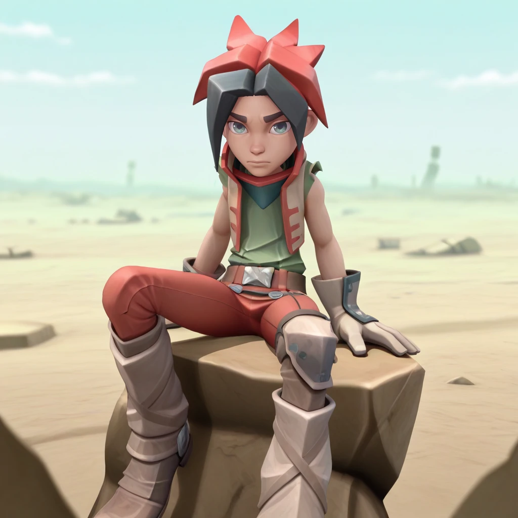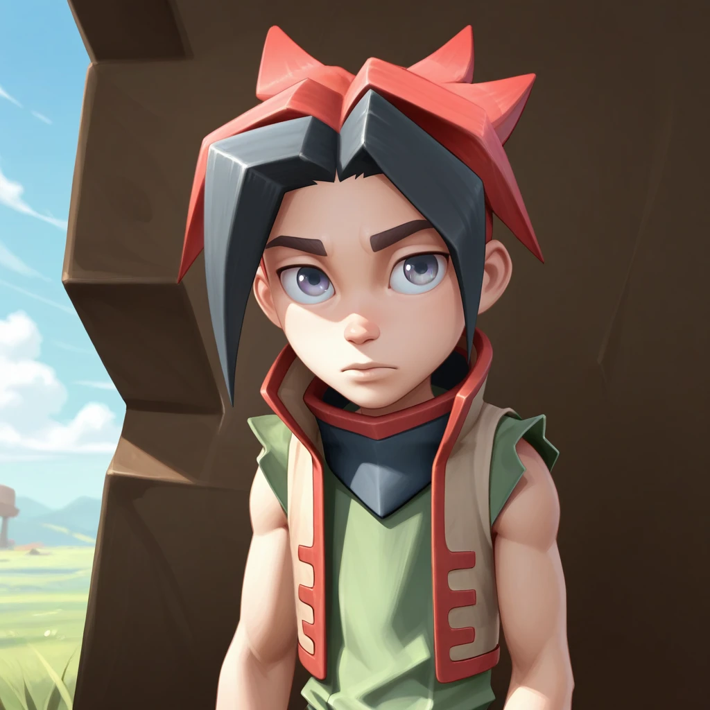 lanfeust, 1boy, solo, multicolored hair, grey eyes,