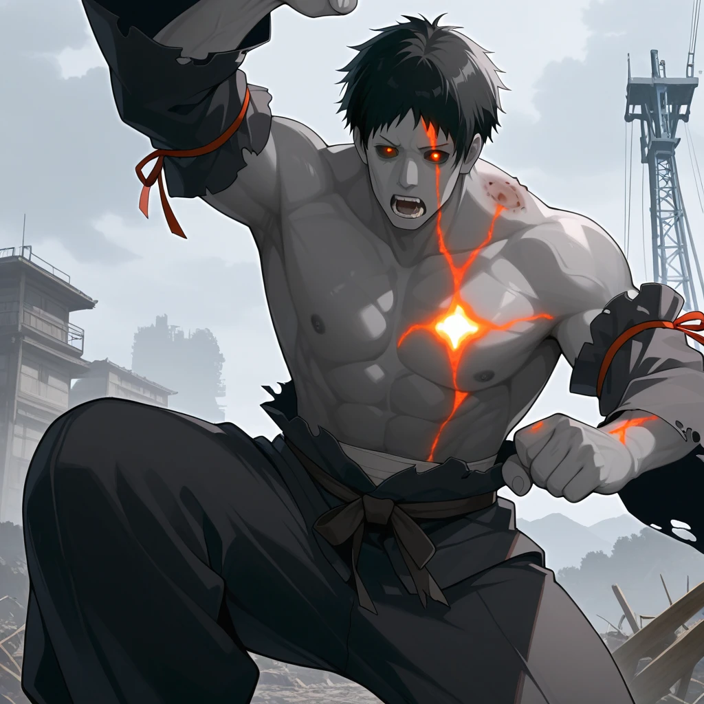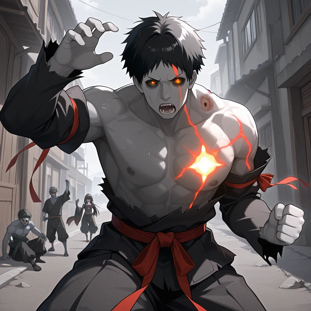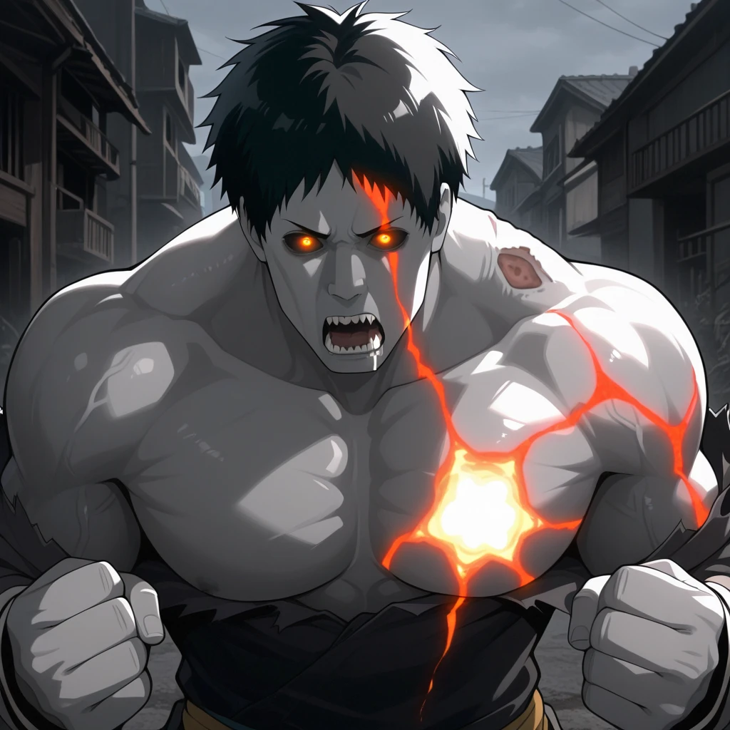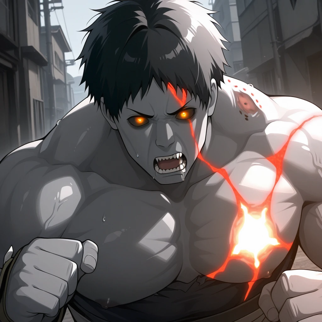 m4w4zatori, grey skin, colored skin, black sclera, glowing eyes, glowing veins, bite mark