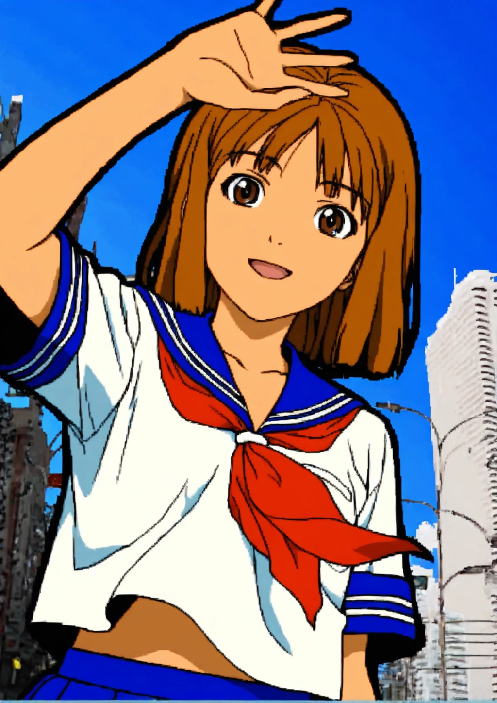 tomomi \(janken game acchi muite hoi!\),brown hair,brown eyes,(dark-skinned female:0.6),serafuku,