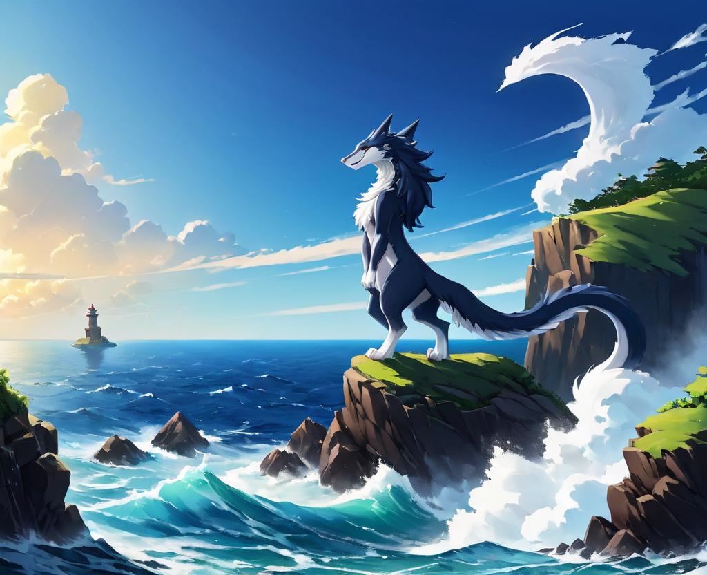 Prompt: Stylized cinematic anime artwork, (fluffy anthro furry), Dingo, female, fit, digital painting, acrylic painting, (loose shirt, downblouse), side-tie bikini bottom, single tail, subsurface scattering, smooth lines, detailed