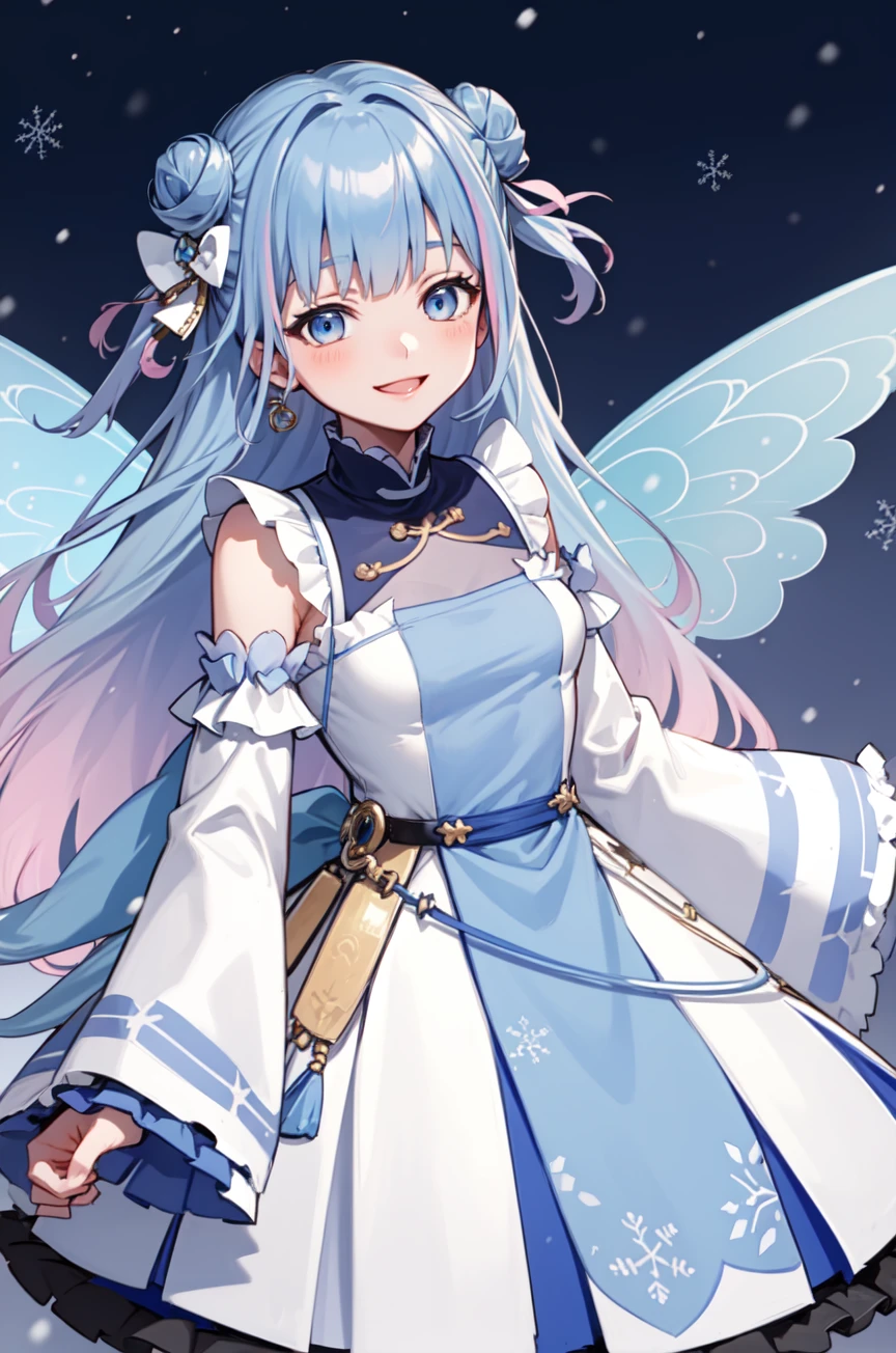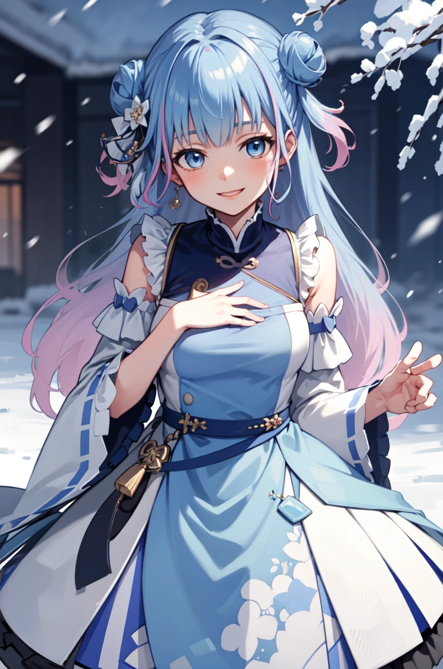 aoi sakura, long hair, double bun, dress, detached sleeves, frills