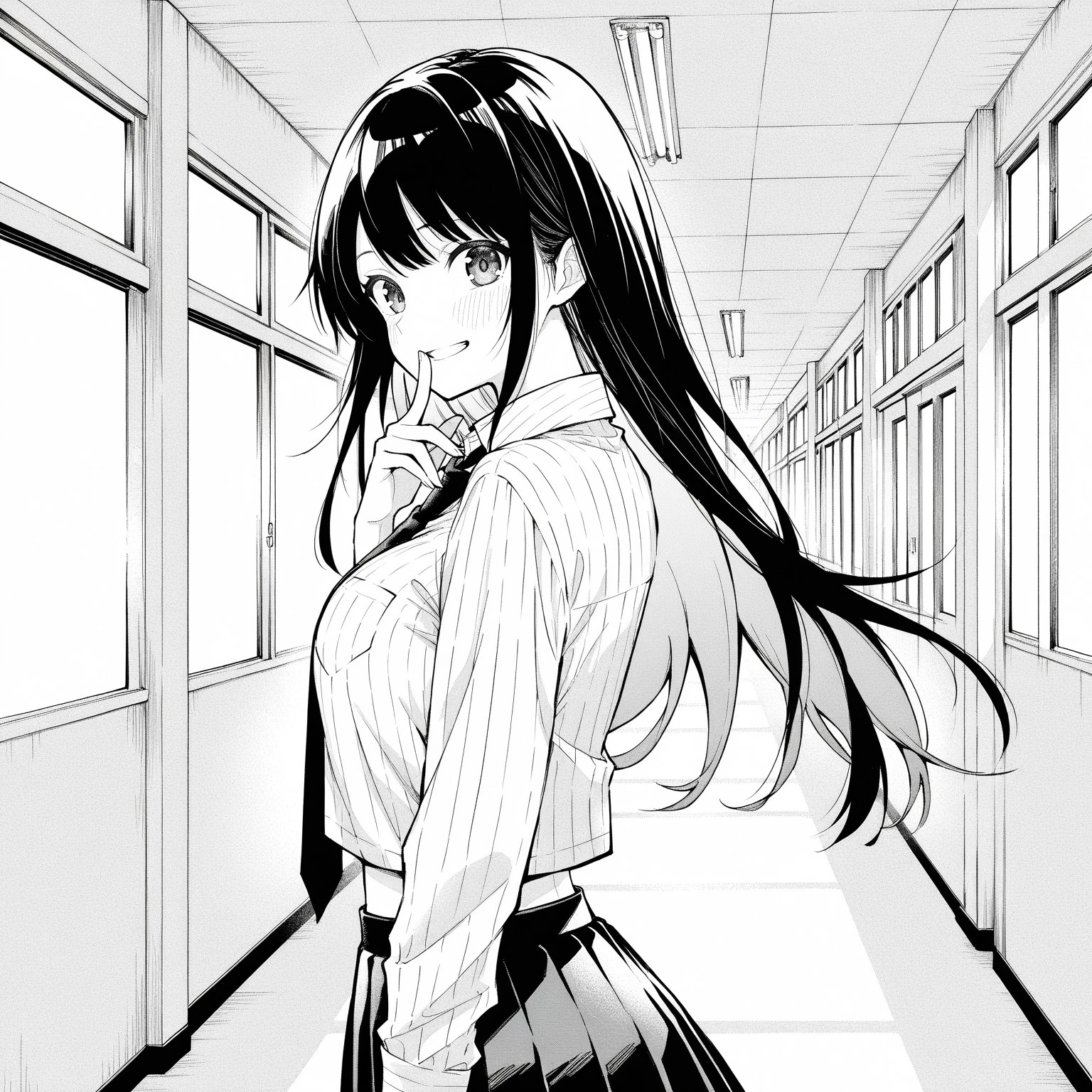 school: nobusch, black necktie, white shirt, black skirt