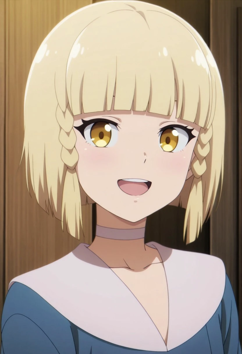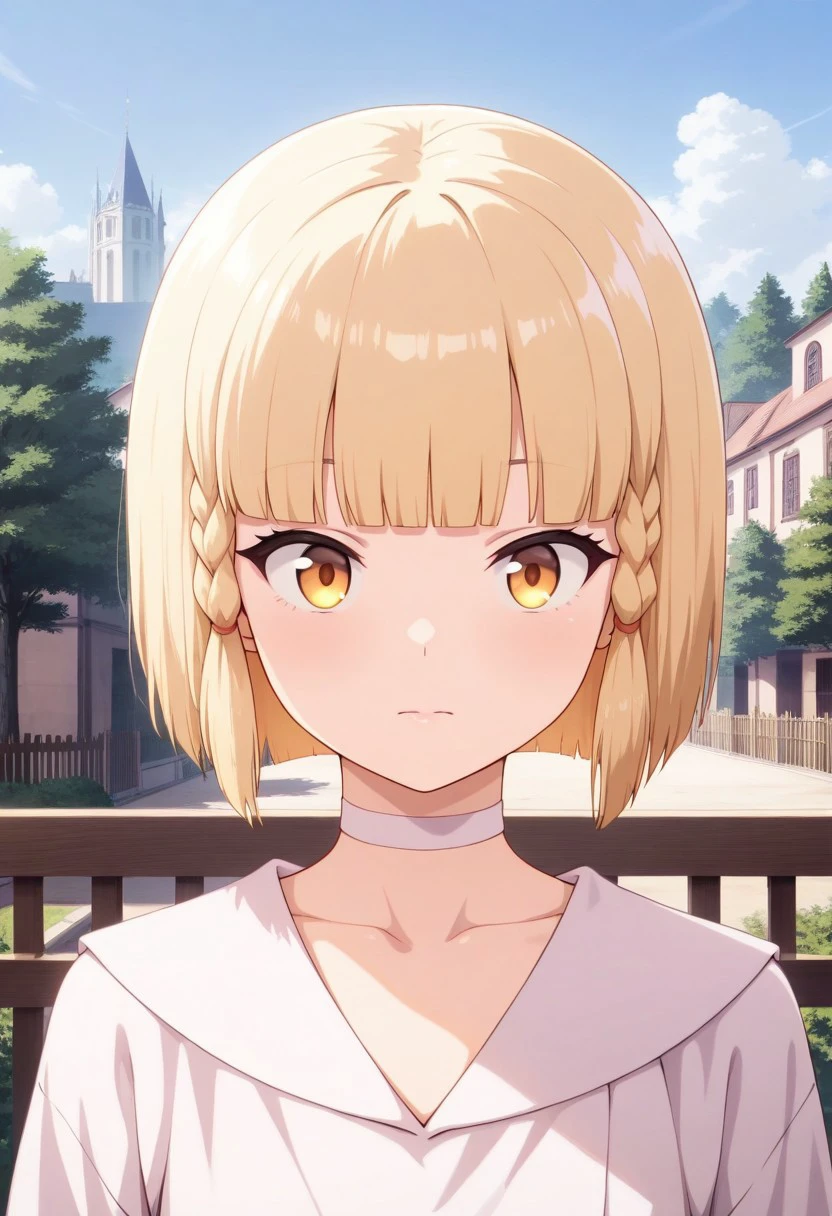 Trigger Words: alize, blonde hair, short hair, blunt bangs, golden eyes