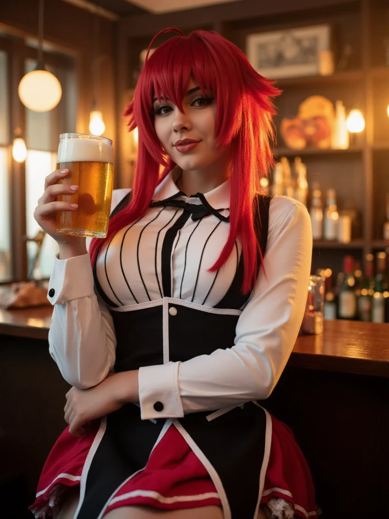 a woman with red hair and large breasts
