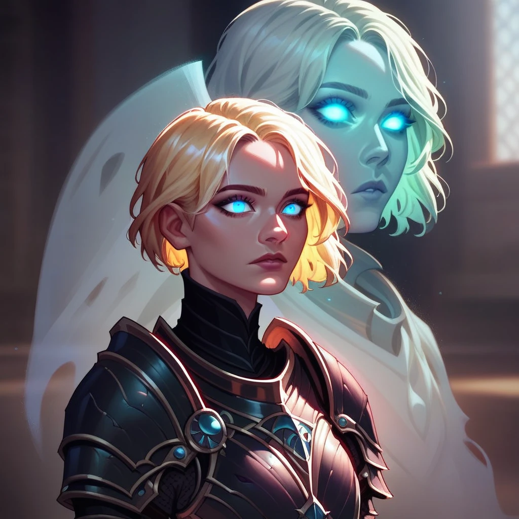 2characters, echokn, ghostly twin, shadow with glowing eyes,