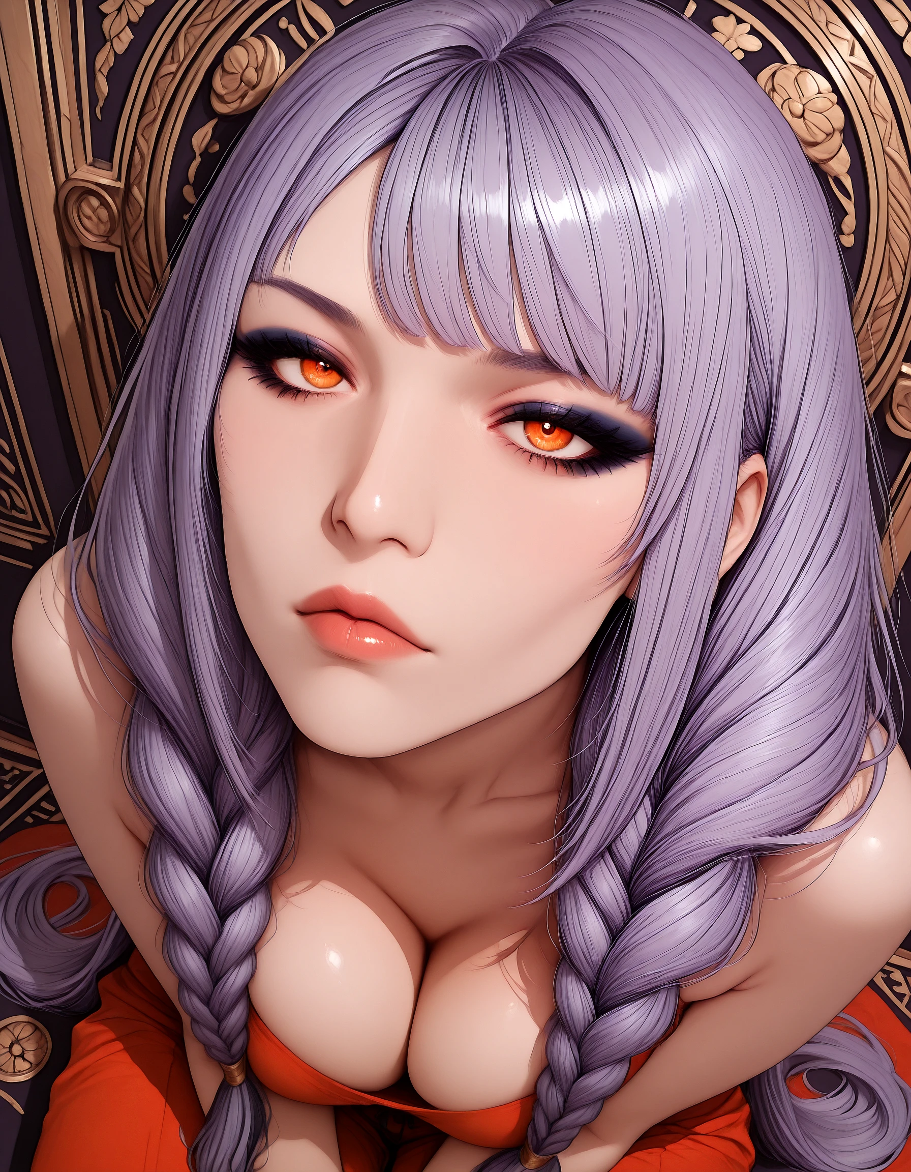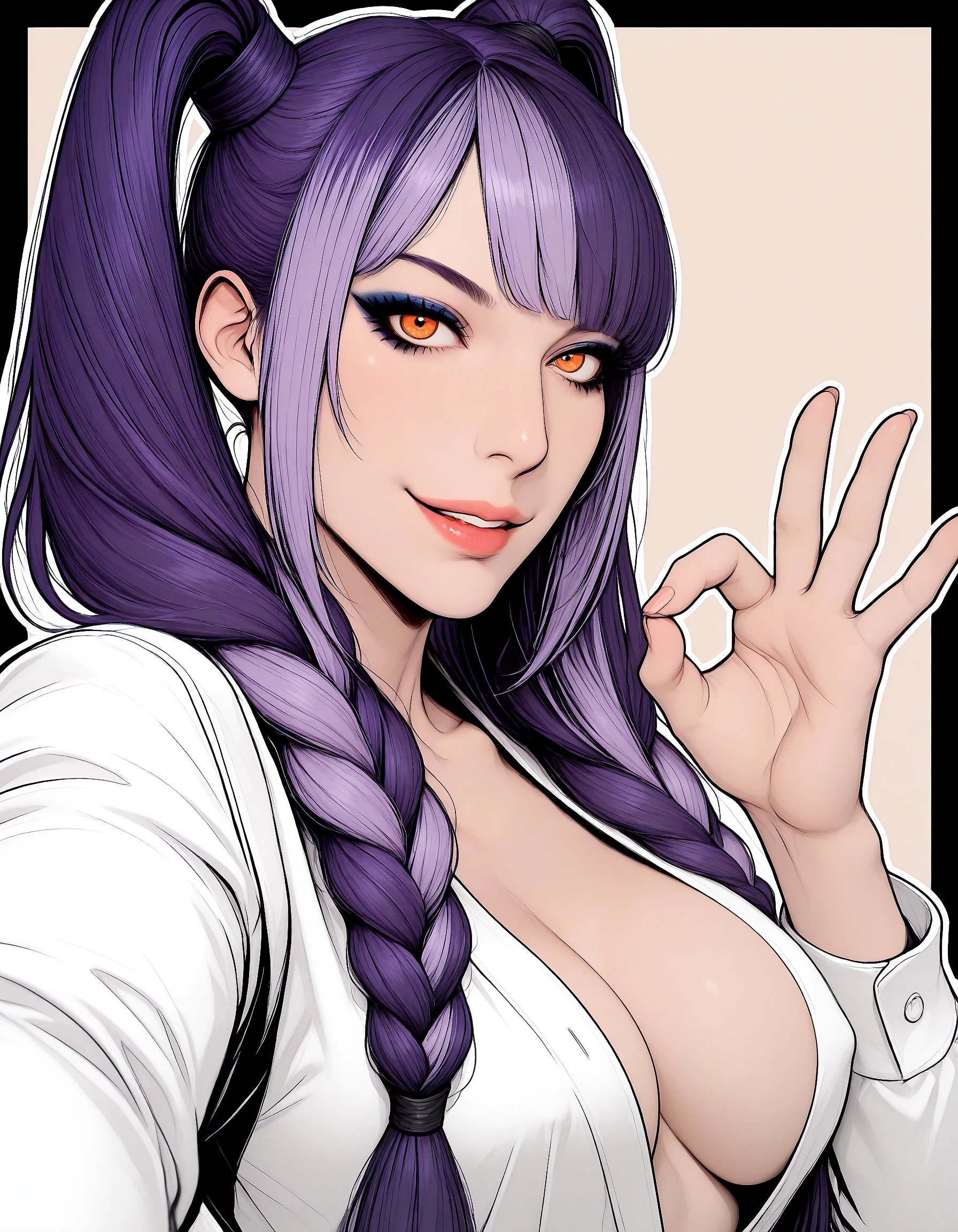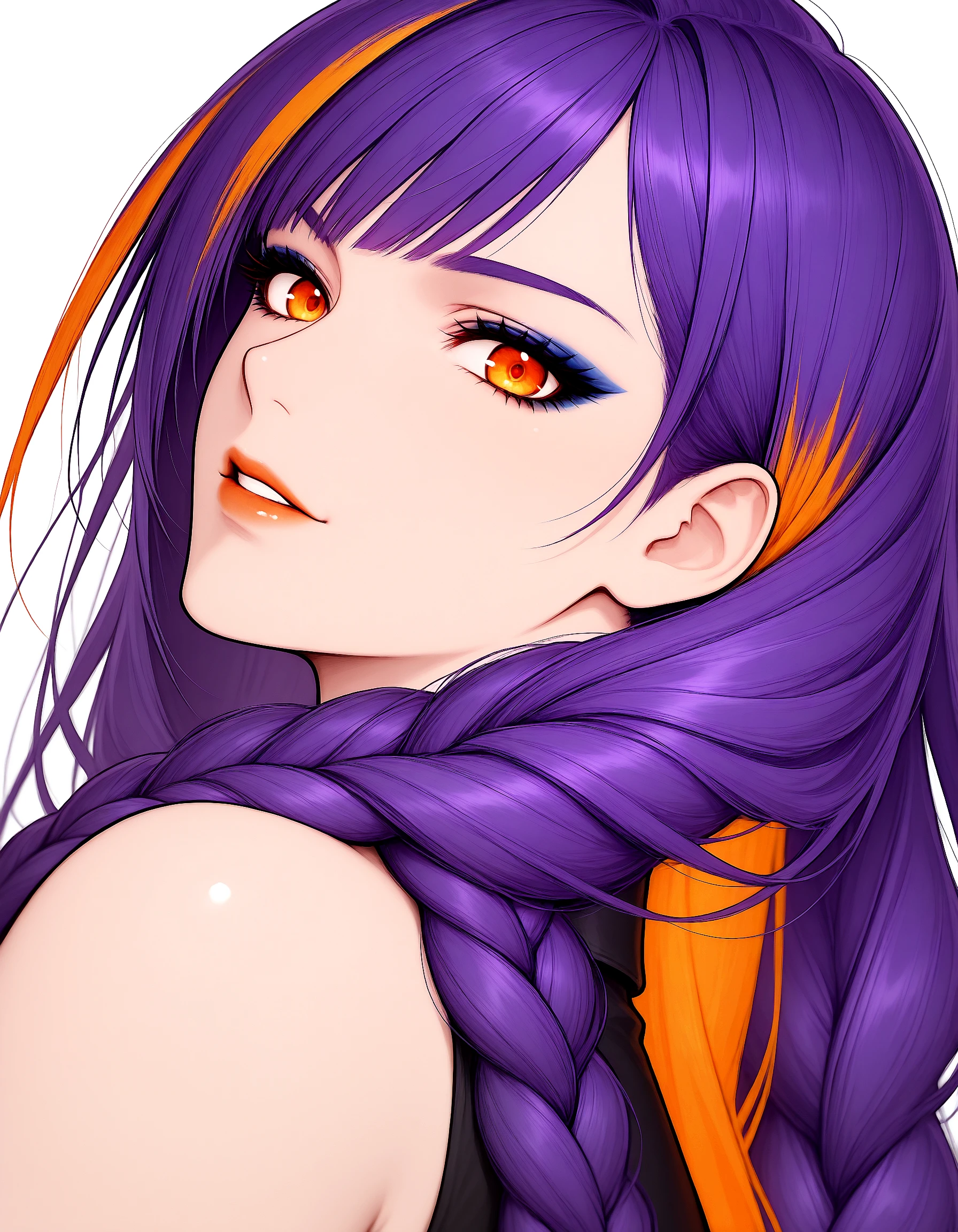 ac_vellin, braids, violet_hair, two-tone_hair, navy_hair, very_long_hair, orange_eyes