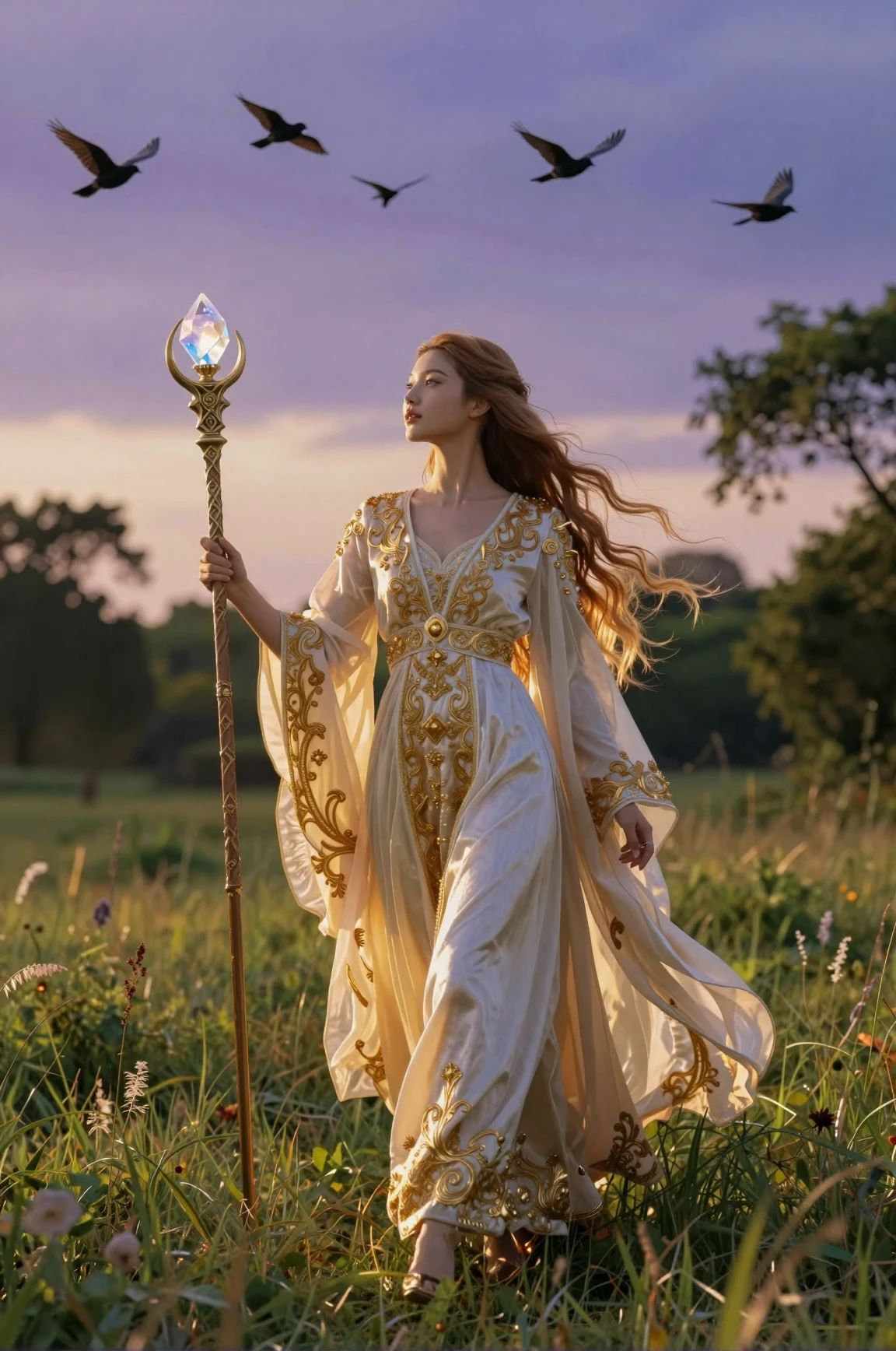sunset light casting warm glow. Ancient architecture, peaceful atmosphere.