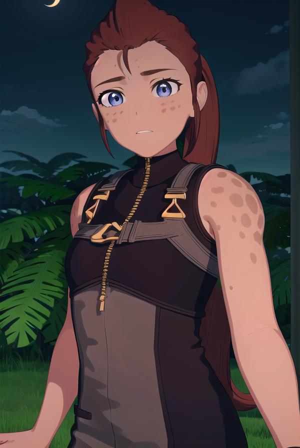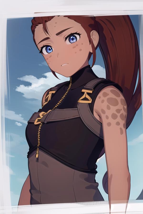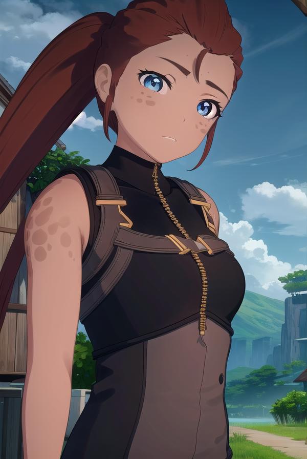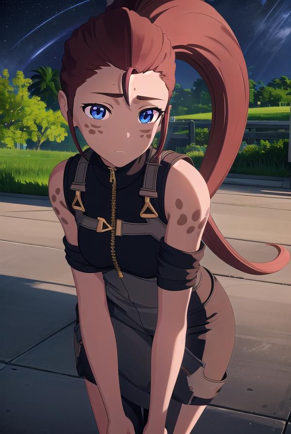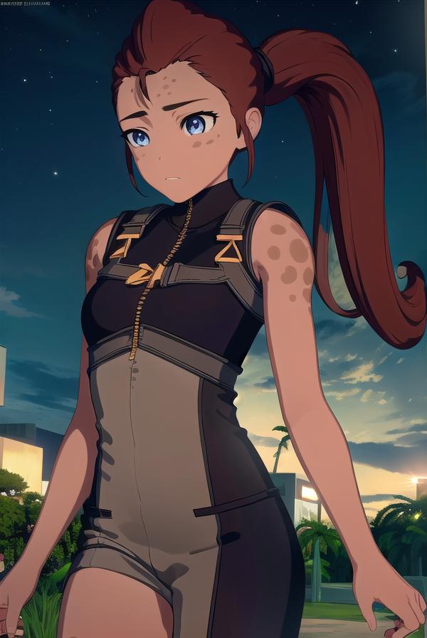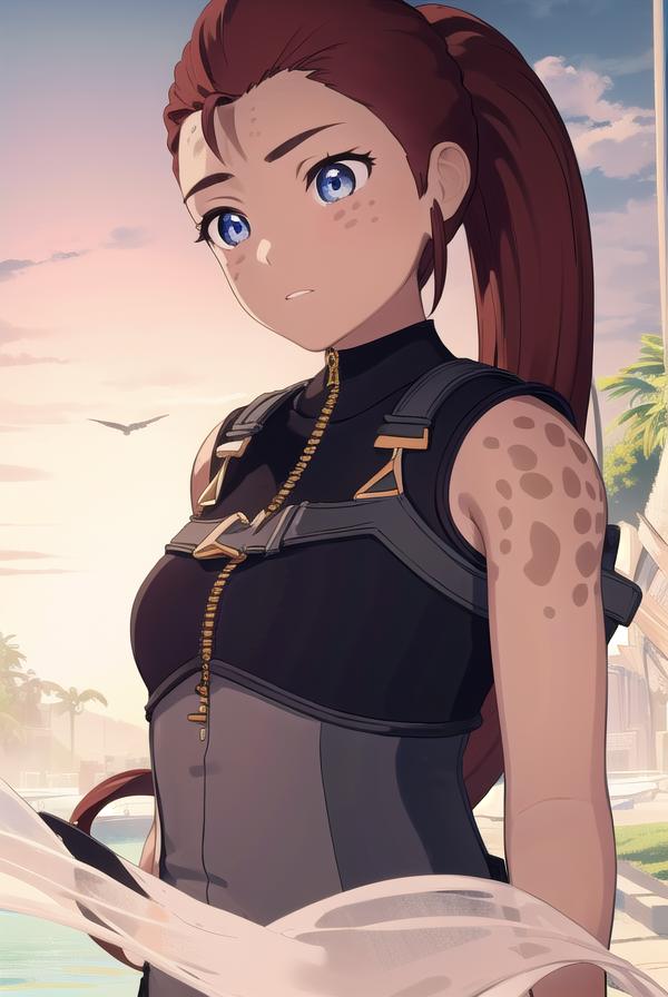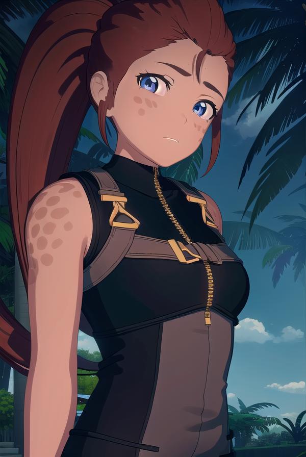 ilia amitola, long hair, blue eyes, brown hair, ponytail, dark skin, dark-skinned female,