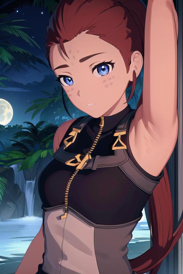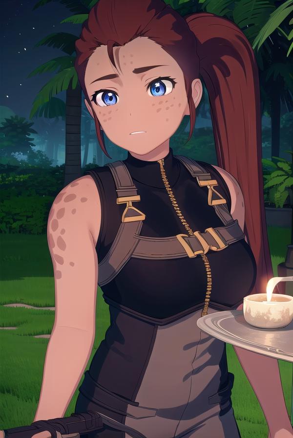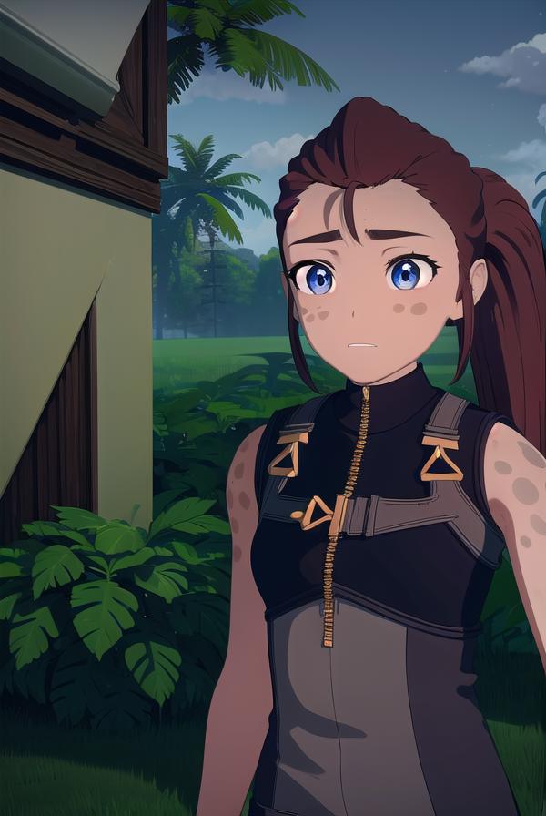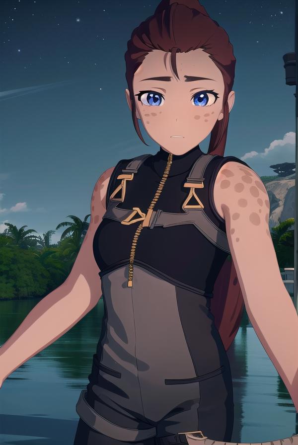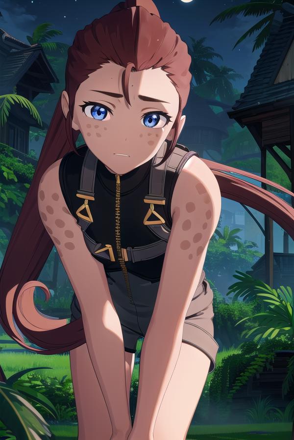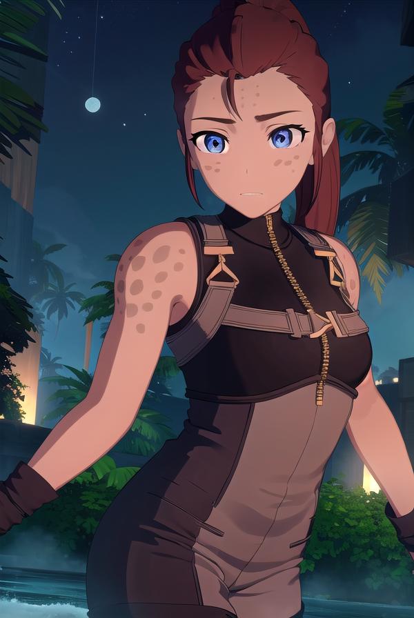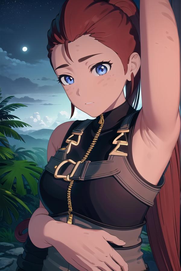 ilia amitola, long hair, blue eyes, brown hair, ponytail, dark skin, dark-skinned female,