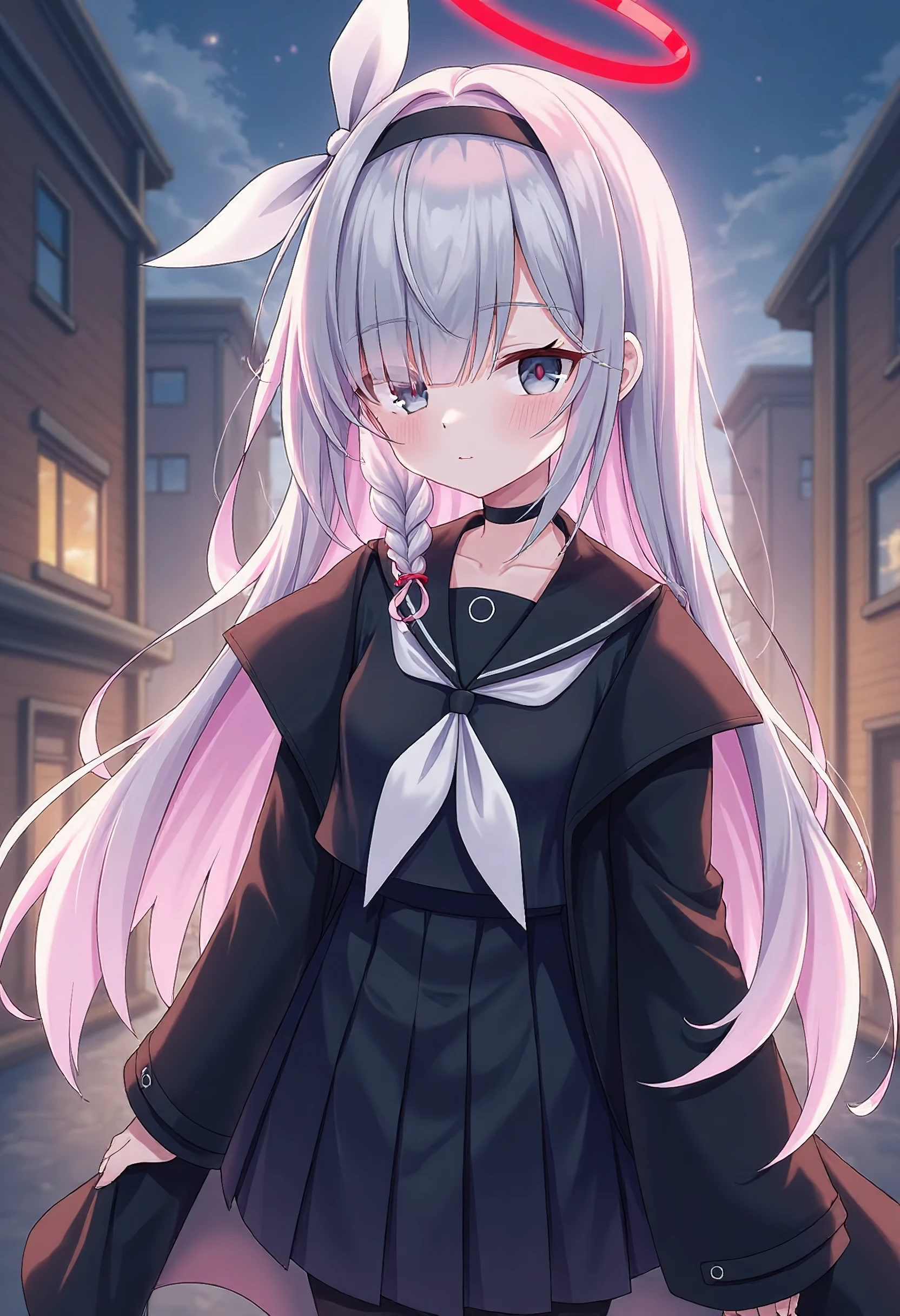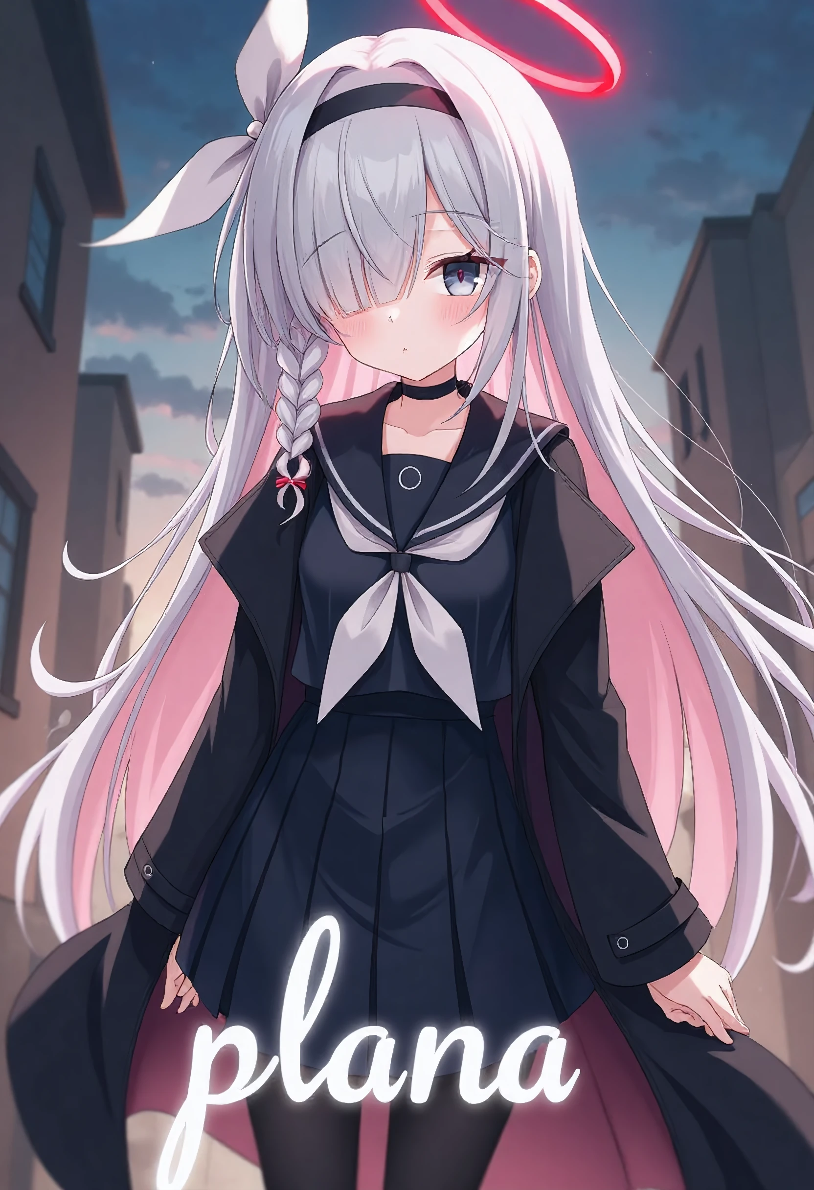 example:In this breathtaking digital illustration, Plana from Blue Archive is captured in a moment of quiet strength and delicate beauty. The artist has rendered her with flowing, waist-length white hair that subtly transitions into a warm red gradient toward the tips, lending her an ethereal glow. Her characteristic asymmetrical bangs partially veil one eye, while her contrasting irises—one pale blue and the other a deep, striking red—add an intriguing depth of emotion and mystery to her gaze citeturn0search8.