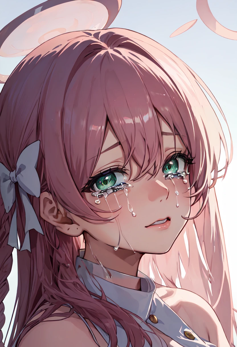 - The pruned character tags are long hair, pink hair, halo, ahoge, breasts, green eyes, pink halo, braid, bow, large breasts, hair bow, white bow, hair between eyes, very long hair. You can add them into prompts when core features (e.g. hair color) of character is not so stable.
