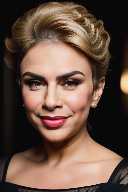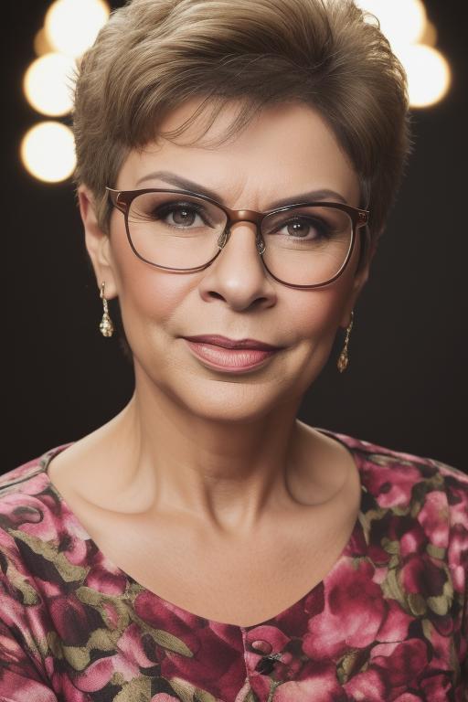 Also, try using with her defining attributes (Blonde, eyeglasses, shorthair) to get a more accurate version of her look.