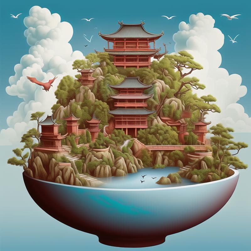 由于我使用了additional network来加载lora,因此你看到的演示图提示词并不包含lora名,在你使用时,记得要在提示词里调用lora,权重0.6到0.75之间为宜。你也可以通过更高的权重来画一些大模型中包含的著名地标性建筑,如埃菲尔铁塔。You can incorporate the following prompts: potted, East Asian architecture, water, bird, garden, cloud, blue sky, sun (to highlight), and other related elements. Additionally, if you prefer to draw modern or Western architecture, include "East Asian architecture" along with negative prompts and use keywords like church, castle, palace, etc.