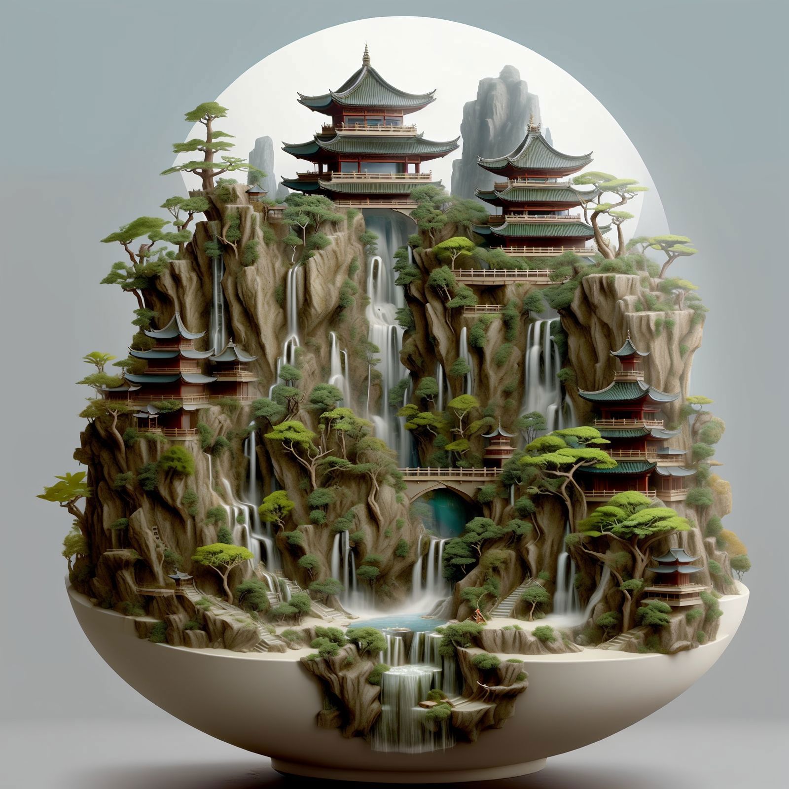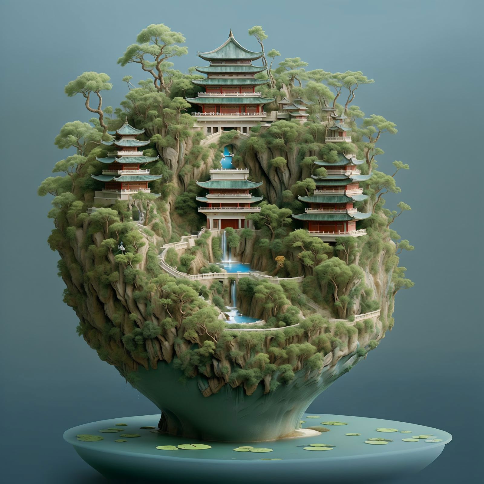 此模型擅长画花盆上的中式古建筑,如果你喜欢,请不要吝啬你的赞和收藏!如果你要支持我,可以通过微信(Anson_NgAu)联系我,让我有电费可以继续跑图训练。