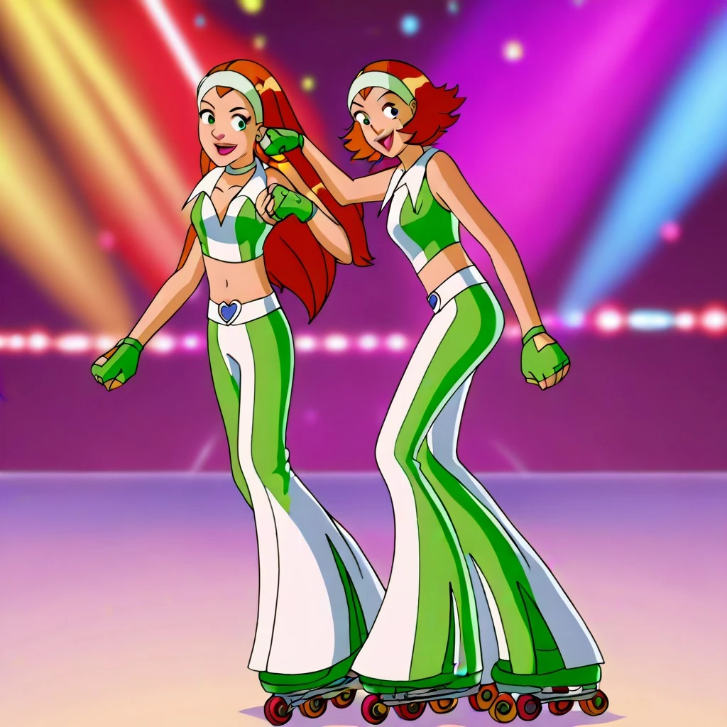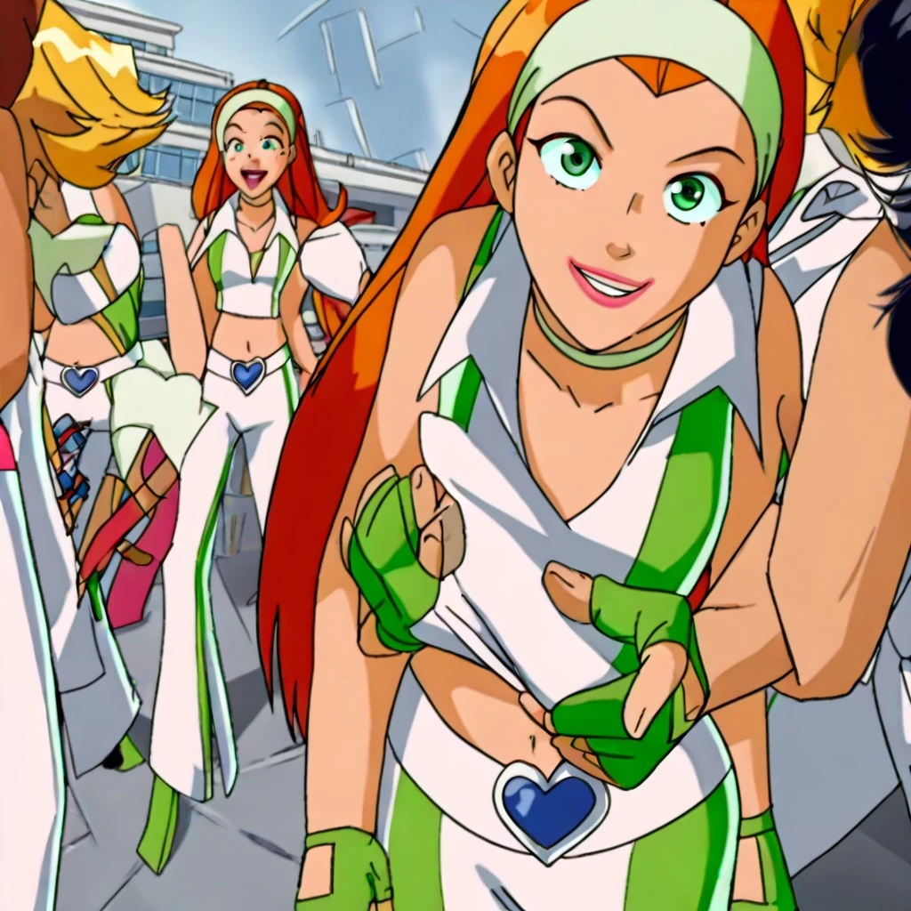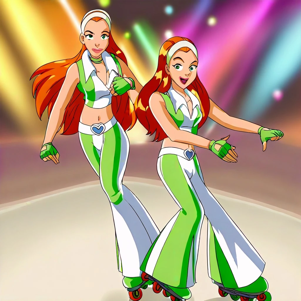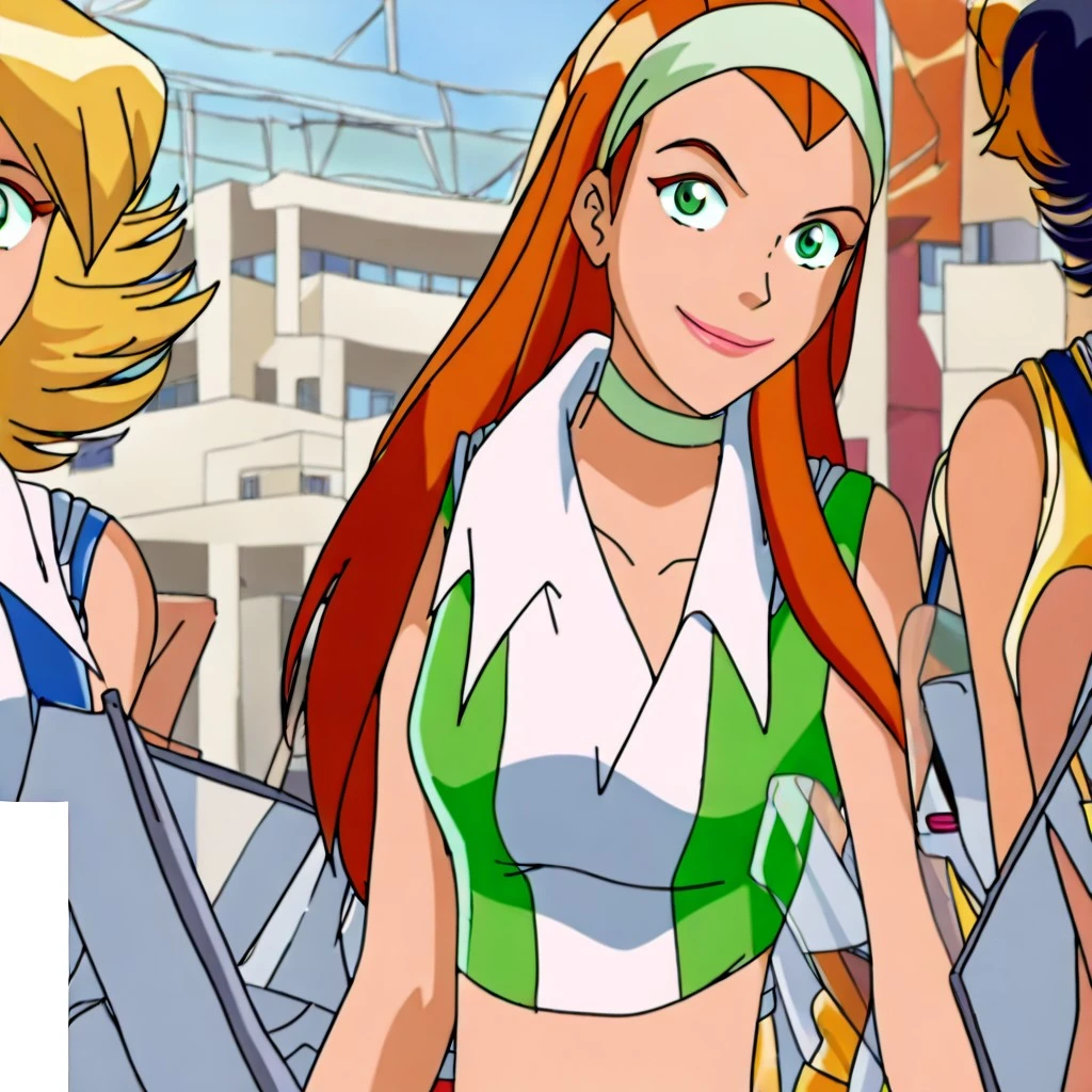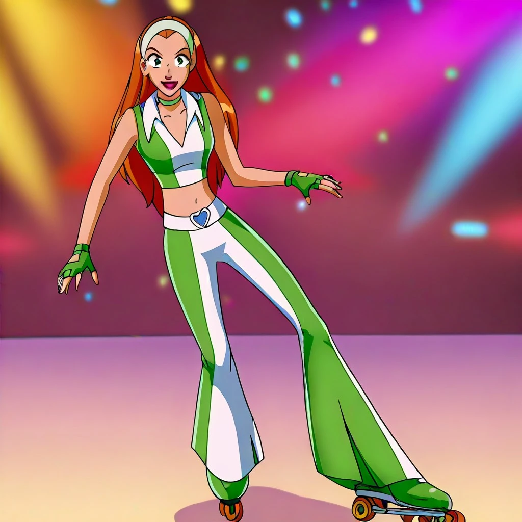 solo, 1girl, Sam, green eyes, orange hair, long hair, lipstick,
