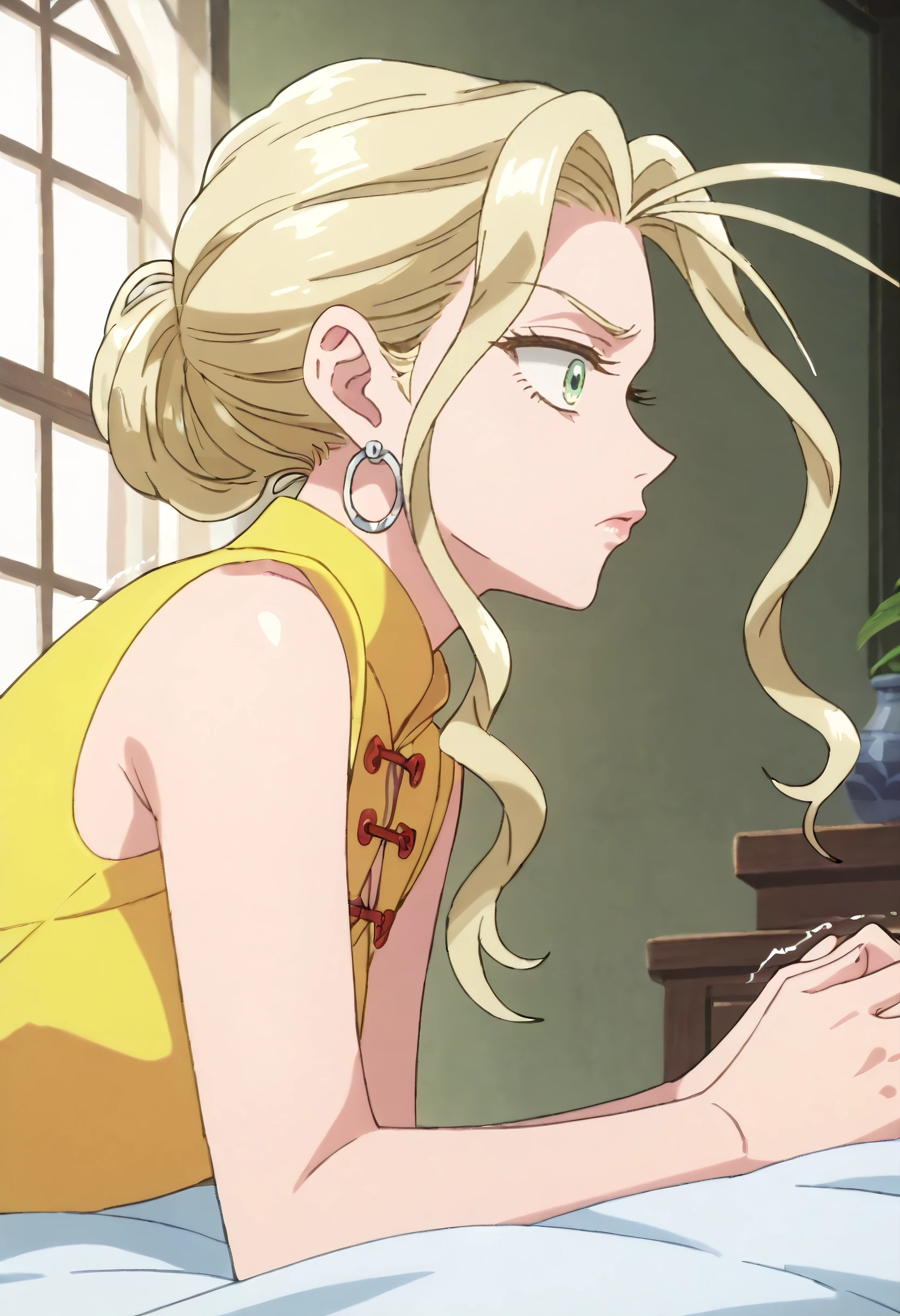 YaomayYeDress, jewelry, earrings, yellow dress, dress, sleeveless, hoop earrings, short sleeves, chinese clothes, china dress, clothing cutout, sleeveless dress,