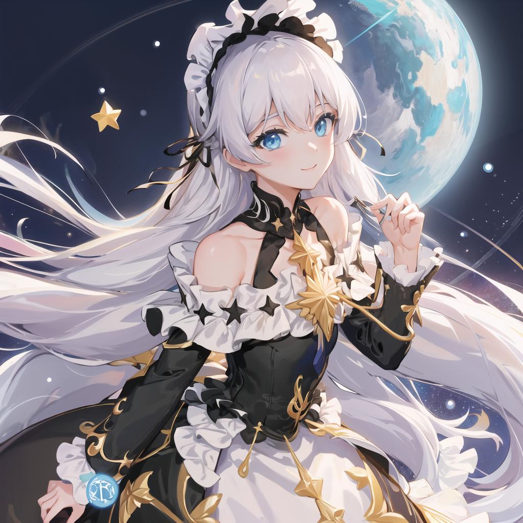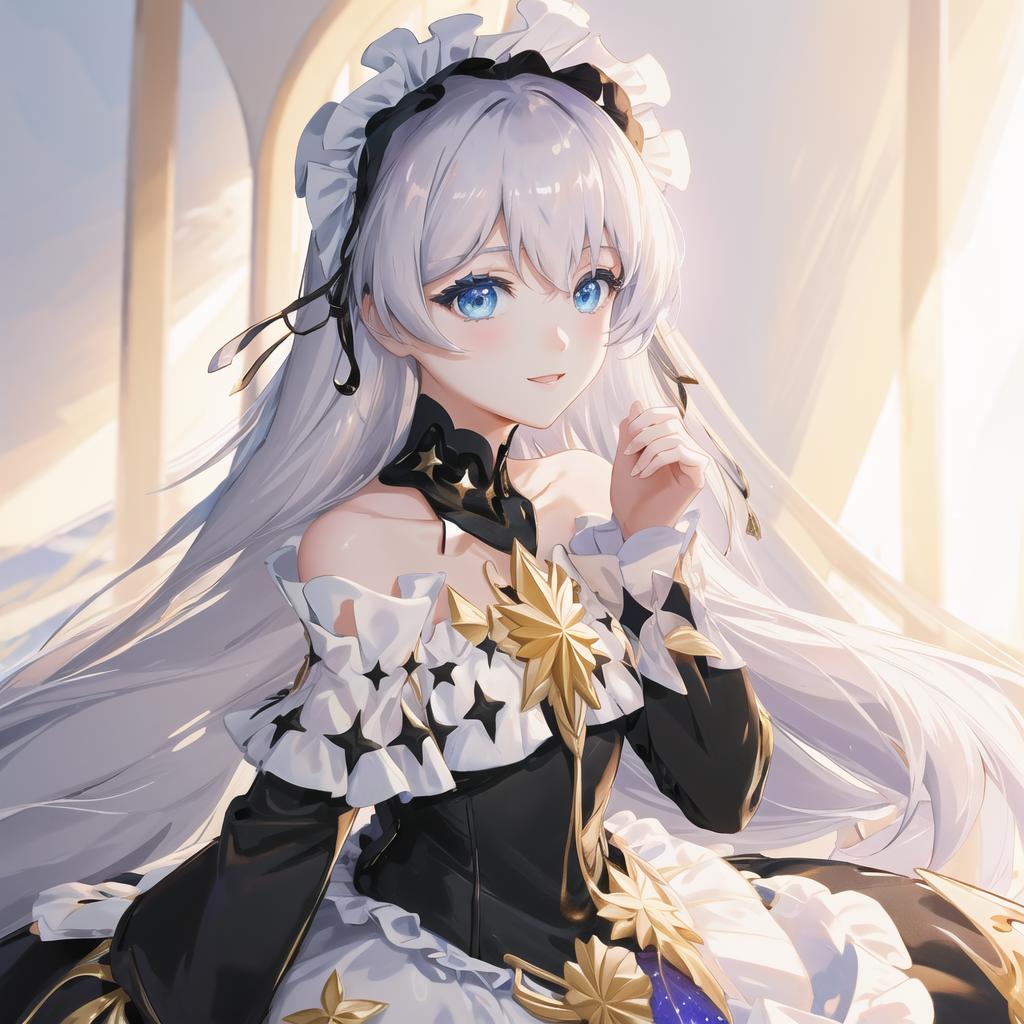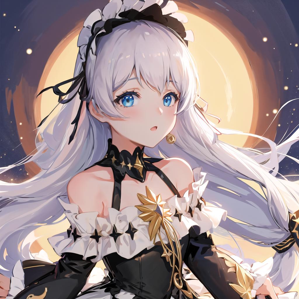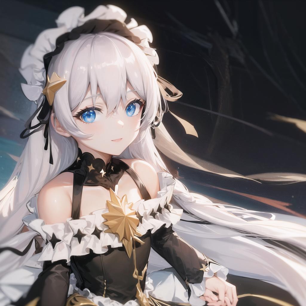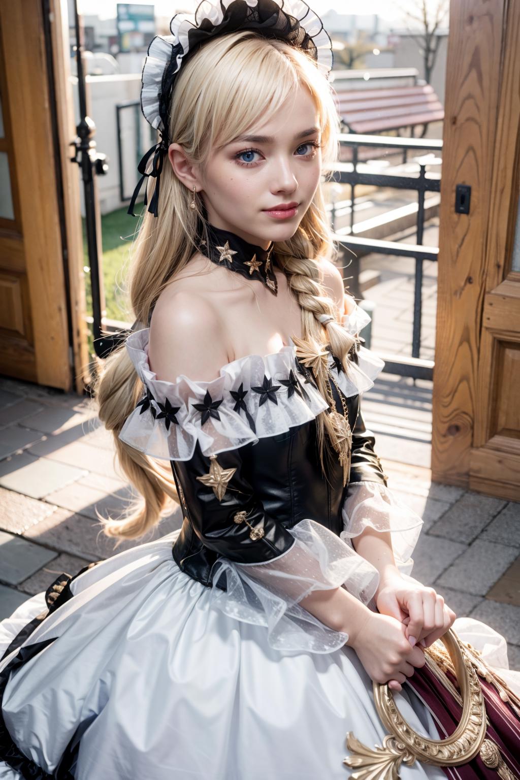 (masterpiece:1.2), (best quality:1.3), empyrean_psalms, 1girl, black_dress, frilled_dress, off-shoulder_dress, bare_shoulders, long_sleeves, star_(symbol), lolita_fashion, <lora:_empyrean_psalms_v1-046:1>