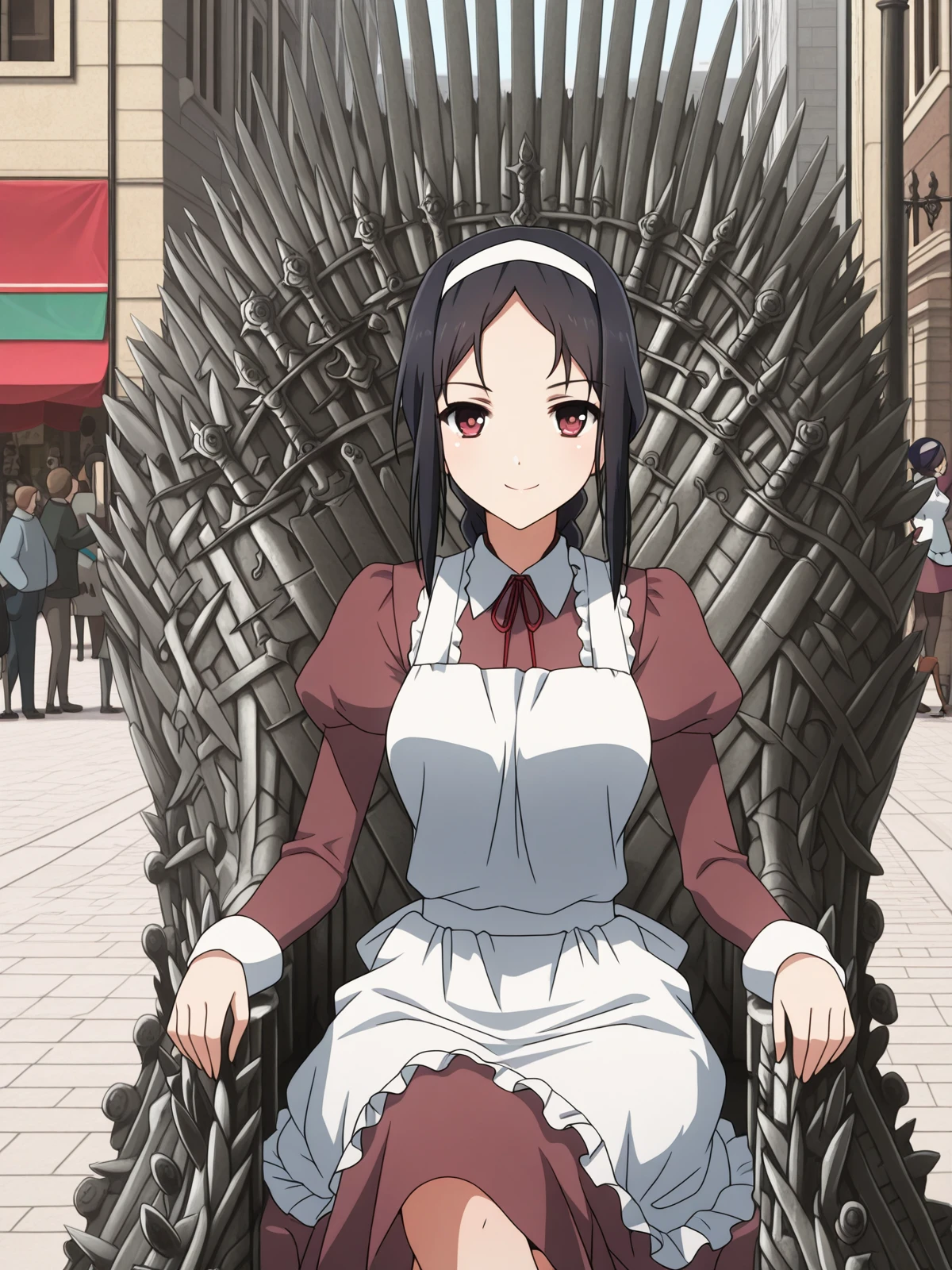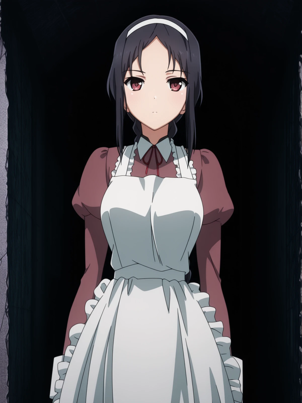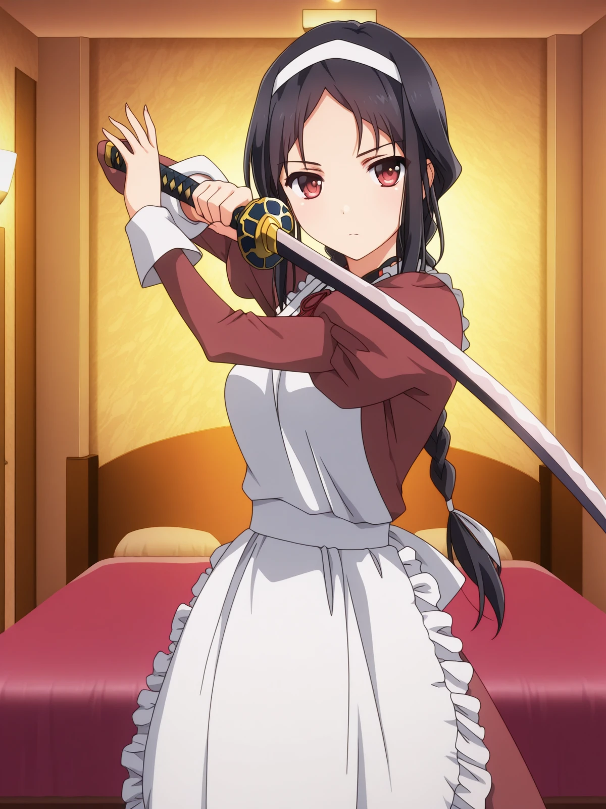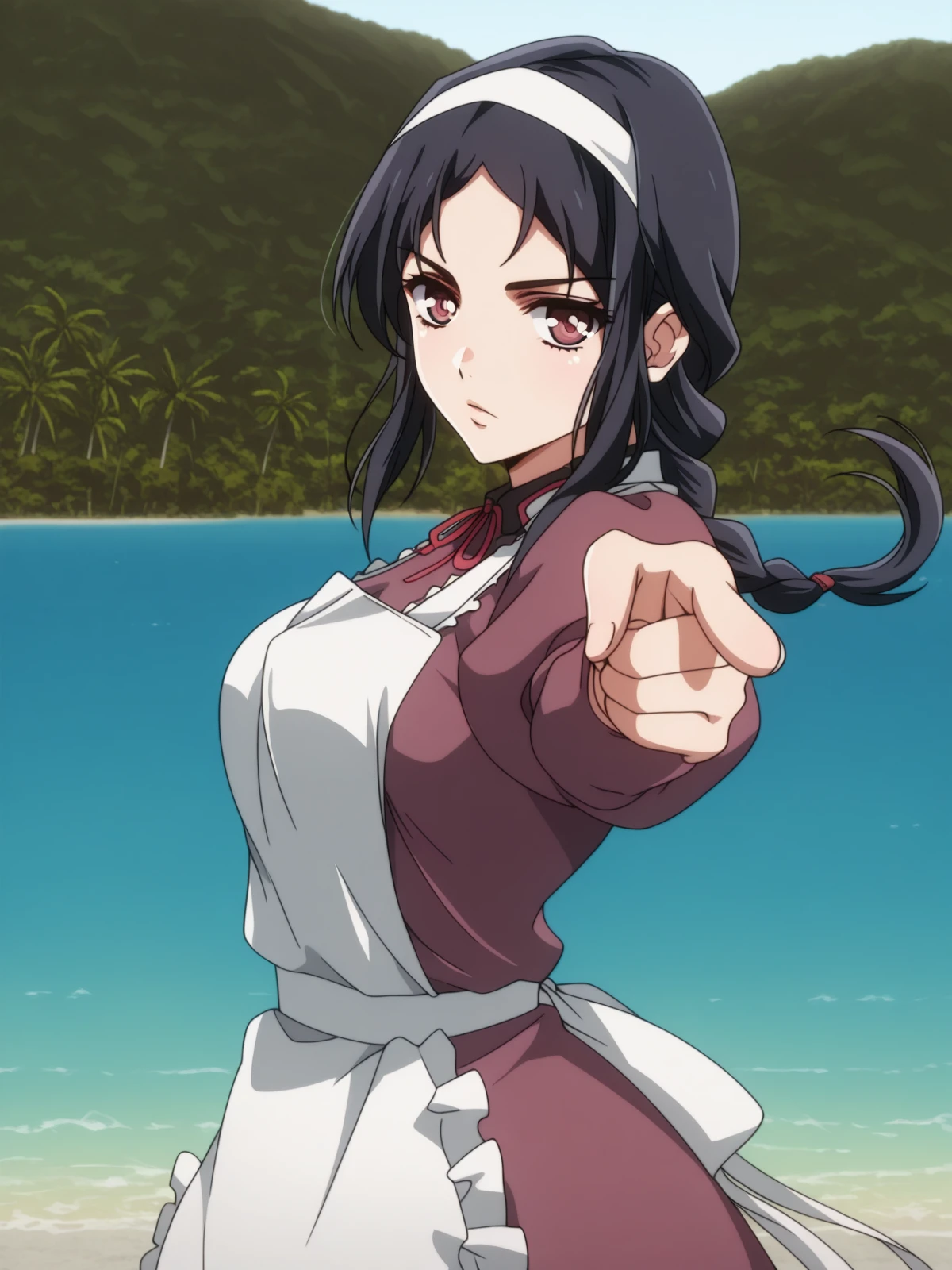 mihaya kakei, black hair, hairband, braid, braided ponytail, sidelocks, mature female, medium breasts, anime screencap