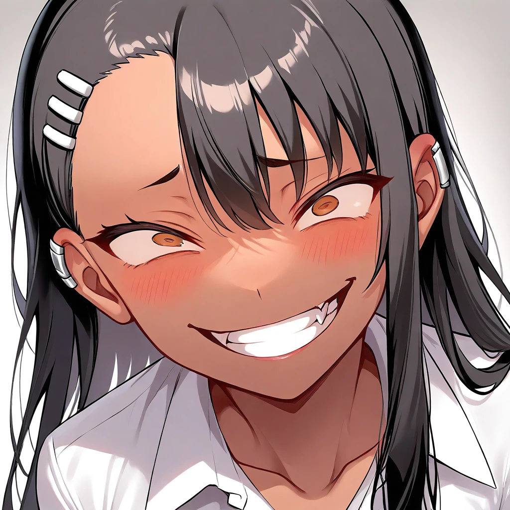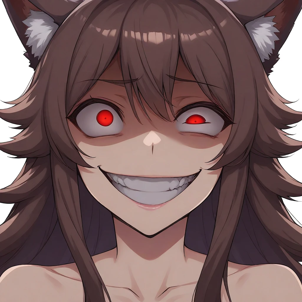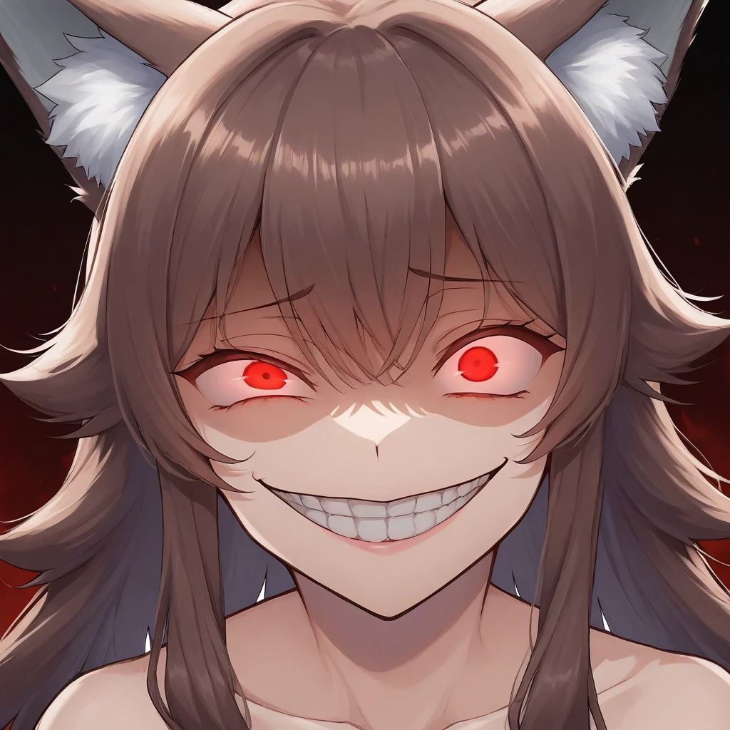 gesugao, crazy smile, crazy eyes glowing eyes parted lips